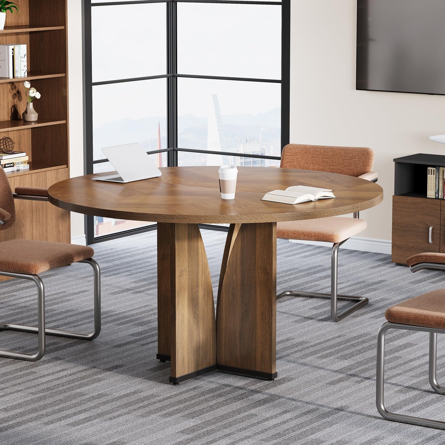 Tribesigns 39" Round Conference Table for 4, Modern Round Meeting Table with Sturdy Base, Small Compact Conference Room Tables for Office, Training, or Negotiation (Brown)