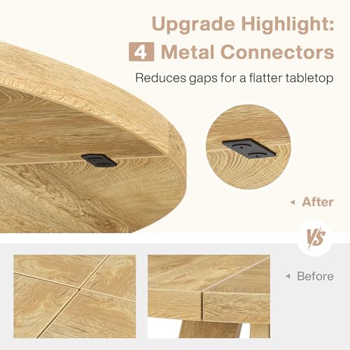 - Stable & Durable Dining Table: Say goodbye to wobbly tables and enjoy rock-solid comfort. For the splicing of the 4 tabletop panels, the innovative flat metal connectors is added additionally to the traditional single bolts fixing. Eliminates gaps and loose surfaces for a flawlessly smooth dining experience. Premium durable wood and cross-shaped base combine robust construction with timeless design, and enhances stability, promising to be a mainstay in your home's dining decor for years