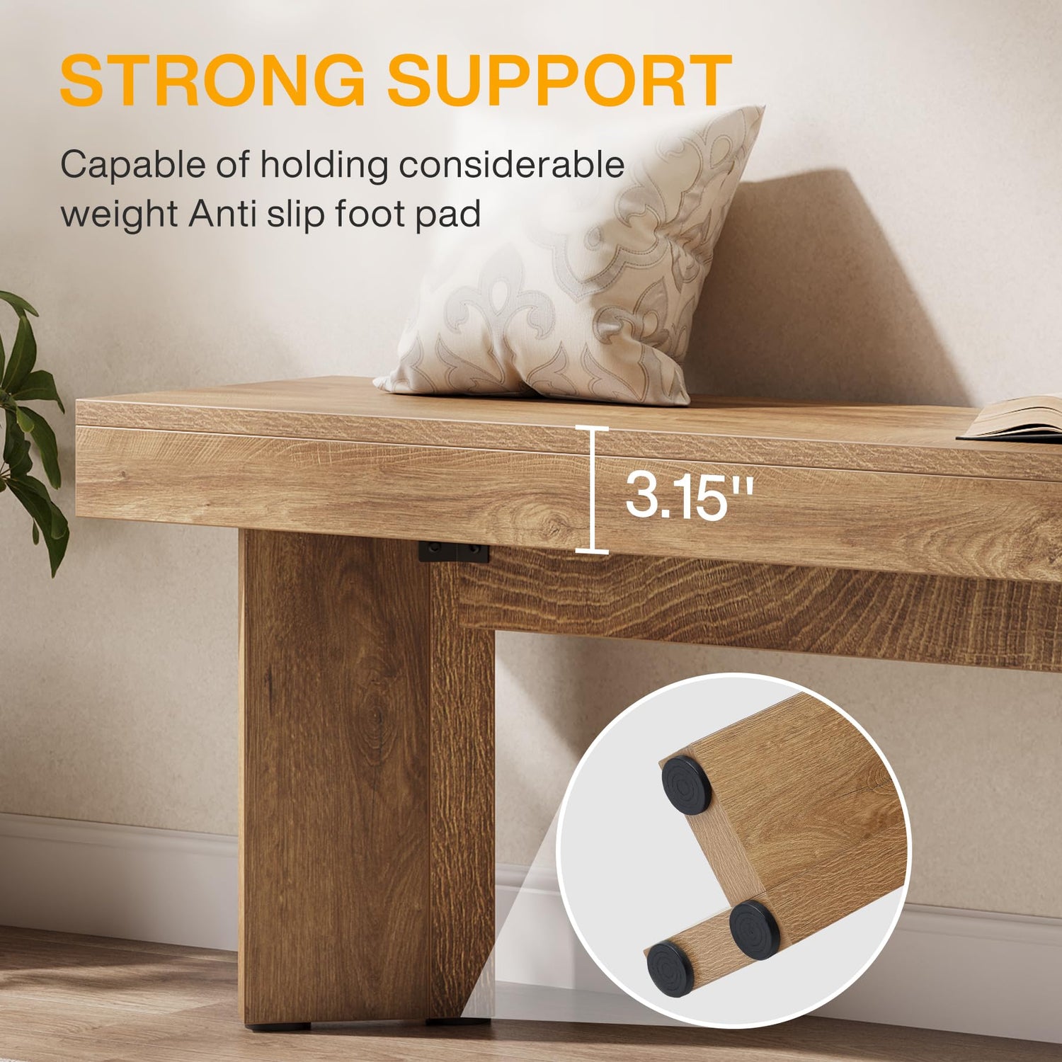 - Superior Durability: The farmhouse wooden table bench boasts a sturdy frame made of high-end MDF material that can comfortably bear significant weight. Additionally, the thickened top board enhances its robustness, making it resistant to wear and tear