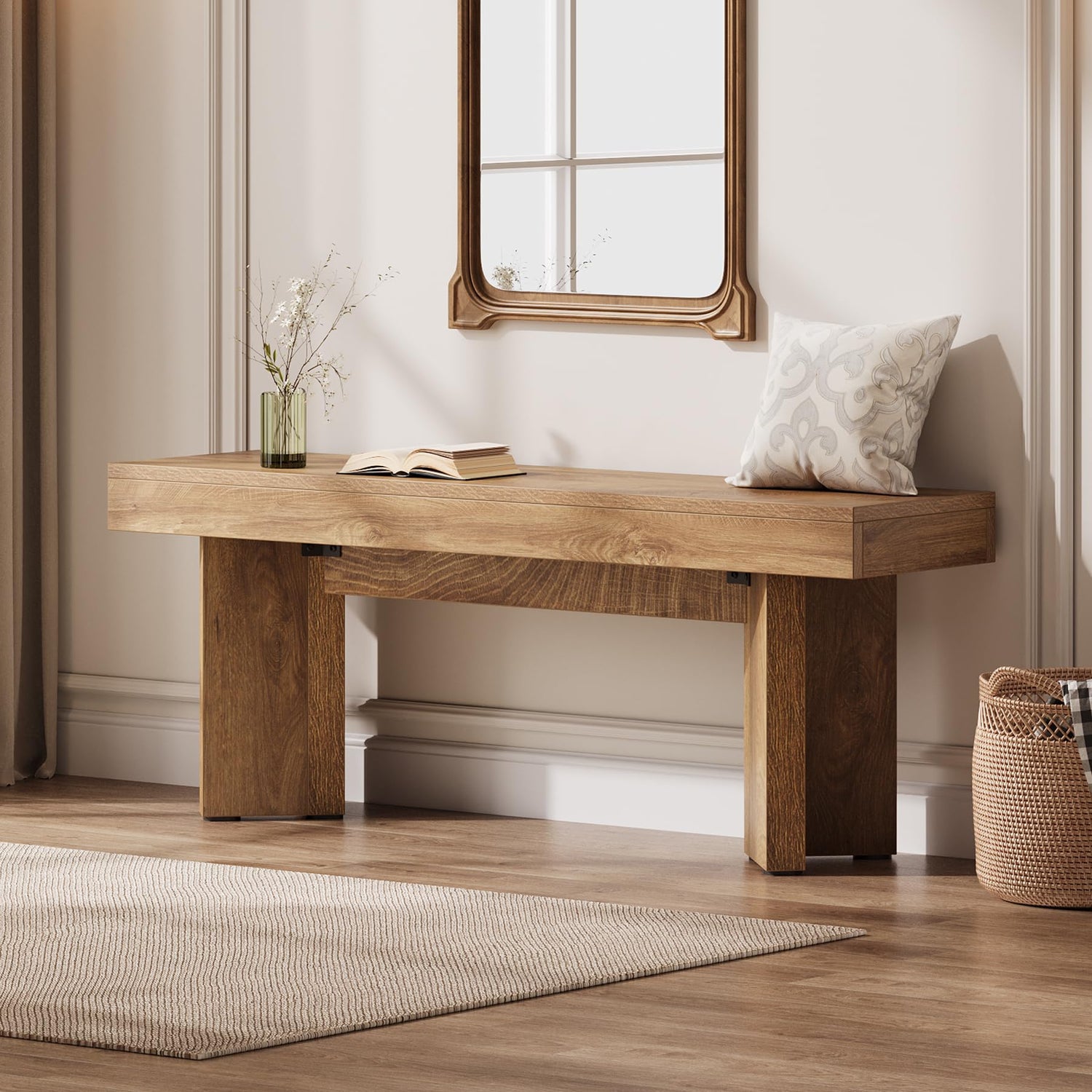 - Exquisite Design: The Tribesigns wooden entryway bench features an exquisite V-shaped pedestal design, exuding an elegant atmosphere, adding a touch of vintage beauty to your interior, fitting well as a stylish addition to your living room or bedroom