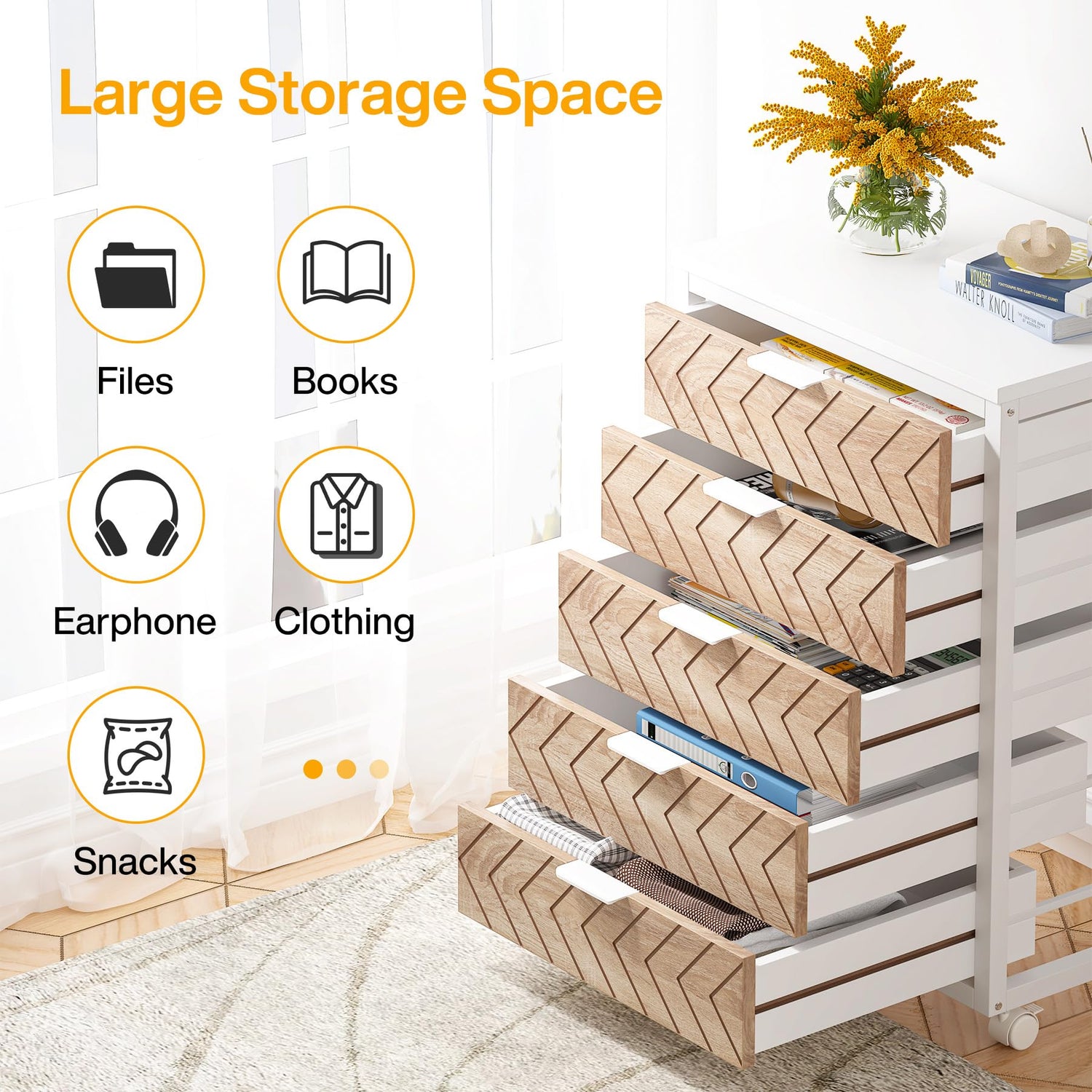 - 【Large Storage Space】 The 5-drawer file cabinets for home office provides abundant storage space. It can store files, office supplies, books, clothing, or other items as needed, keeping your office well-organized. This mobile file cabinet generous top surface can accommodate file folders, a printer, or a scanner, making it an ideal solution for expanding your workspace.