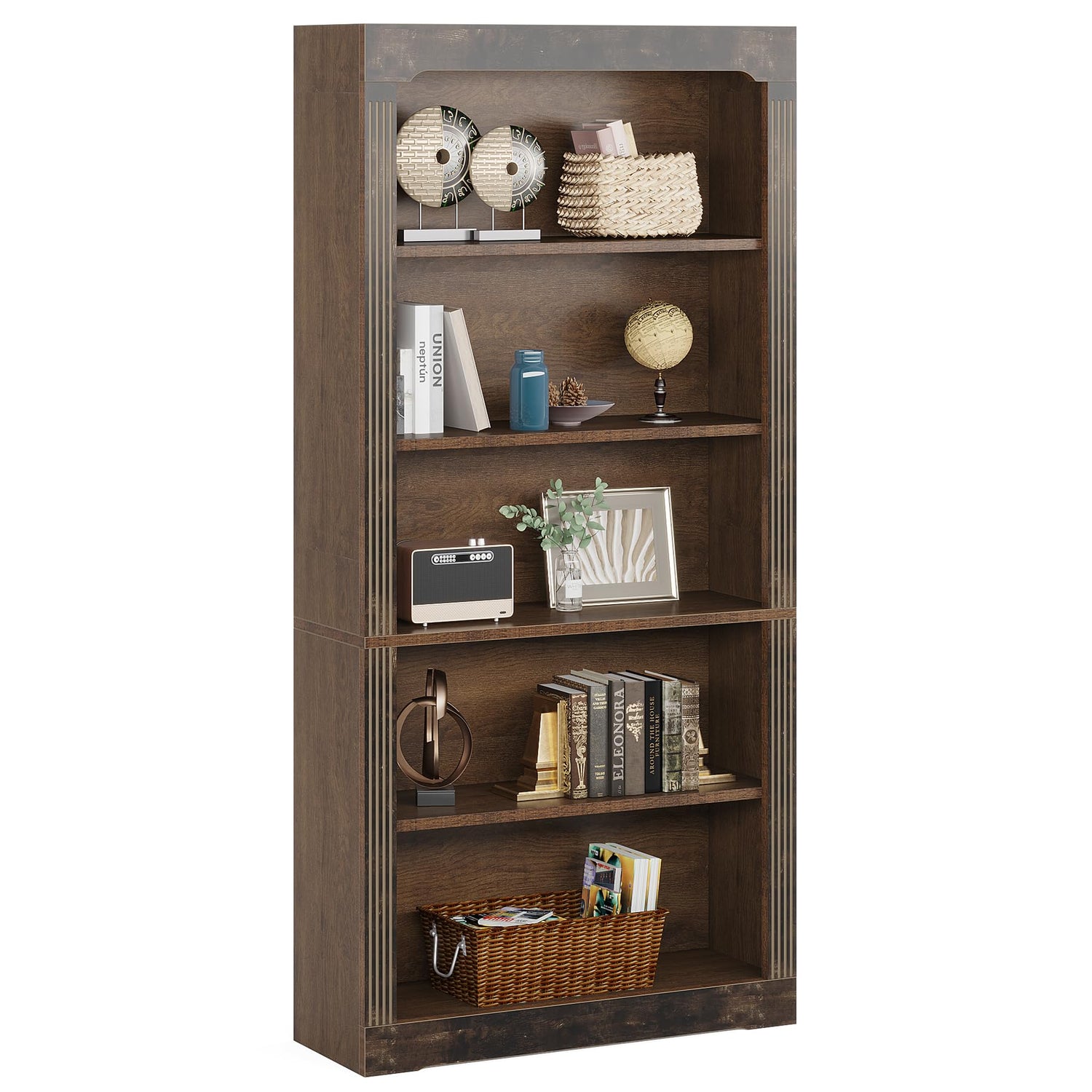 Experience the blend of form and function with the Tribesigns 70-Inch Rustic Brown 5-Tier Bookcase, making it an essential piece in your home or office setting.