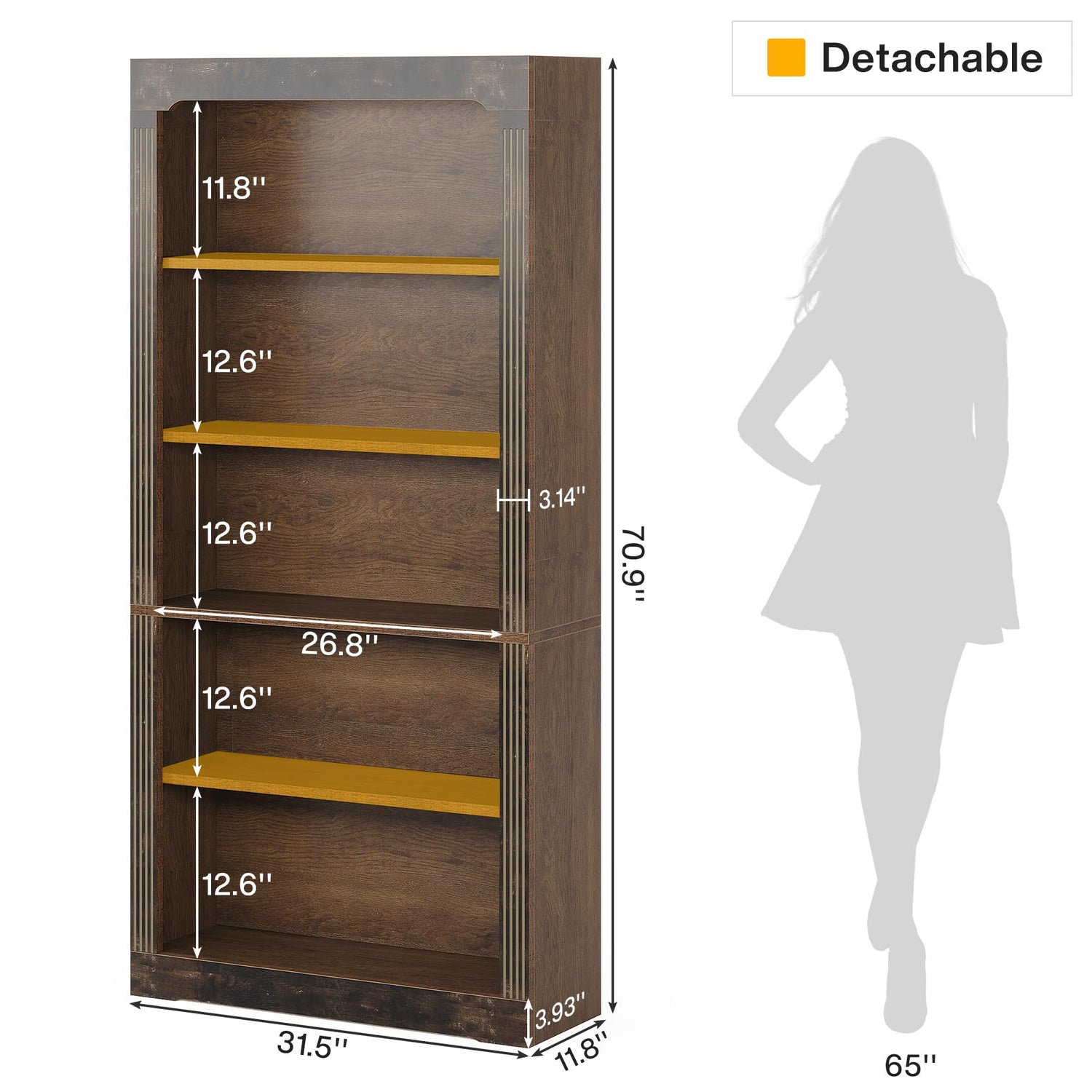 - **Spacious Storage**: Boasting five tiers of generous shelving, it provides ample space to organise a substantial collection of books, magazines, or cherished reading materials. Standing tall at 70 inches, it is the ideal addition to any living room, home office, or study room, keeping your space tidy and clutter-free.
