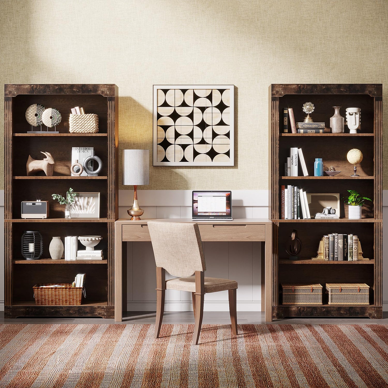 - **Multi-functional Use**: This bookcase is not just for storage; it can serve as a stylish display shelf in bedrooms or studies, showcasing books, crafts, photo frames, or even potted plants. Its rustic brown tone seamlessly complements various room colours and styles, ensuring it remains a standout feature as your decor preferences change over time.
