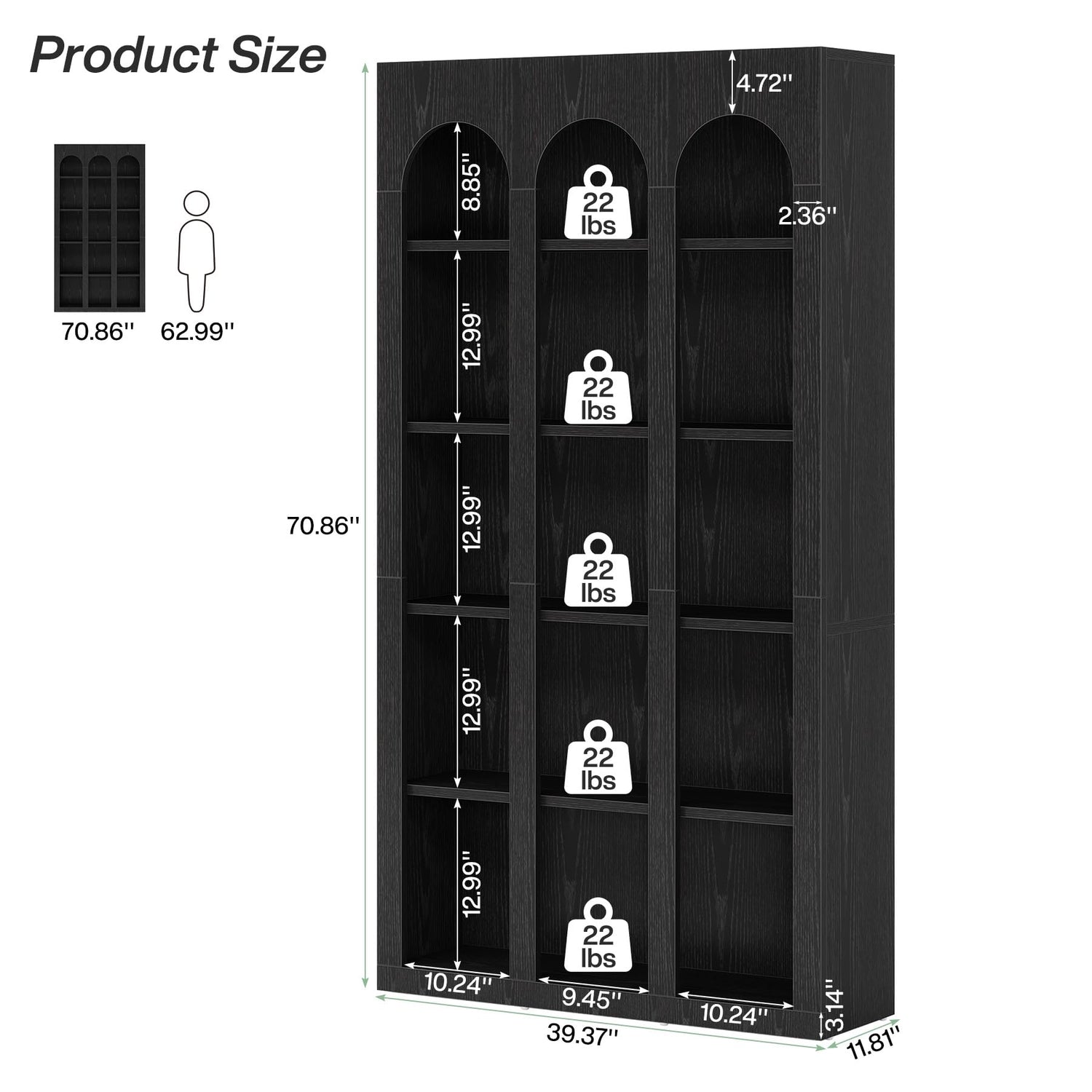 Tribesigns 5-Tier Farmhouse Arched Bookshelf, 70.87-Inch Mid Century Modern Bookcase with Open Shelves, Tall Book Shelf Gothic Display Storage Shelving Unit for Home Office, Black