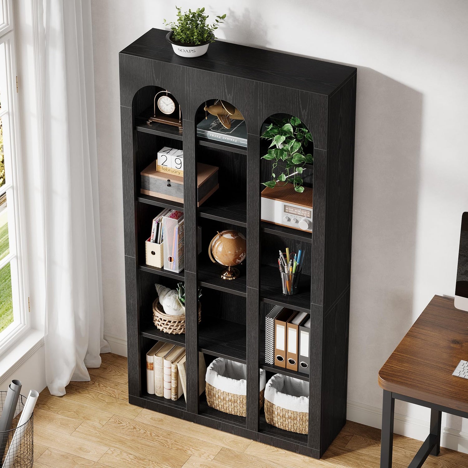 - ๐๐ก๐๐ซ๐ฆ๐ข๐ง๐ ๐๐ข๐ง๐ญ๐๐ ๐ ๐๐๐ฌ๐ข๐ ๐ง: Transform your space with the rustic farmhouse bookshelf that features a vintage black wood grain and arched detailing. It blends timeless charm with practical storage, adding a touch of mystery and elegance to any room