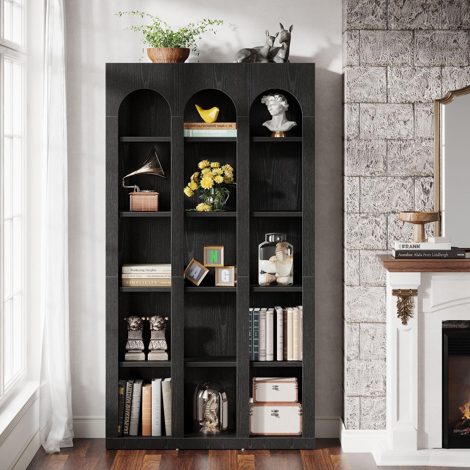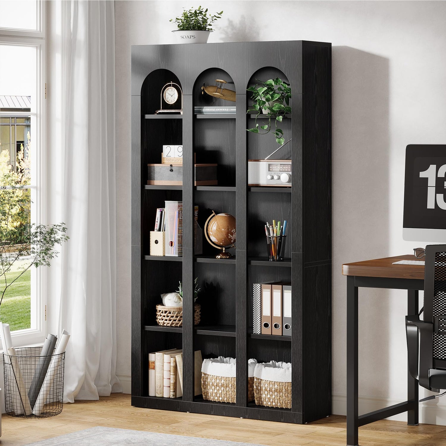 Tribesigns 5-Tier Farmhouse Arched Bookshelf, 70.87-Inch Mid Century Modern Bookcase with Open Shelves, Tall Wood Book Shelf Gothic Display Storage Shelving Unit for Home Office, Black