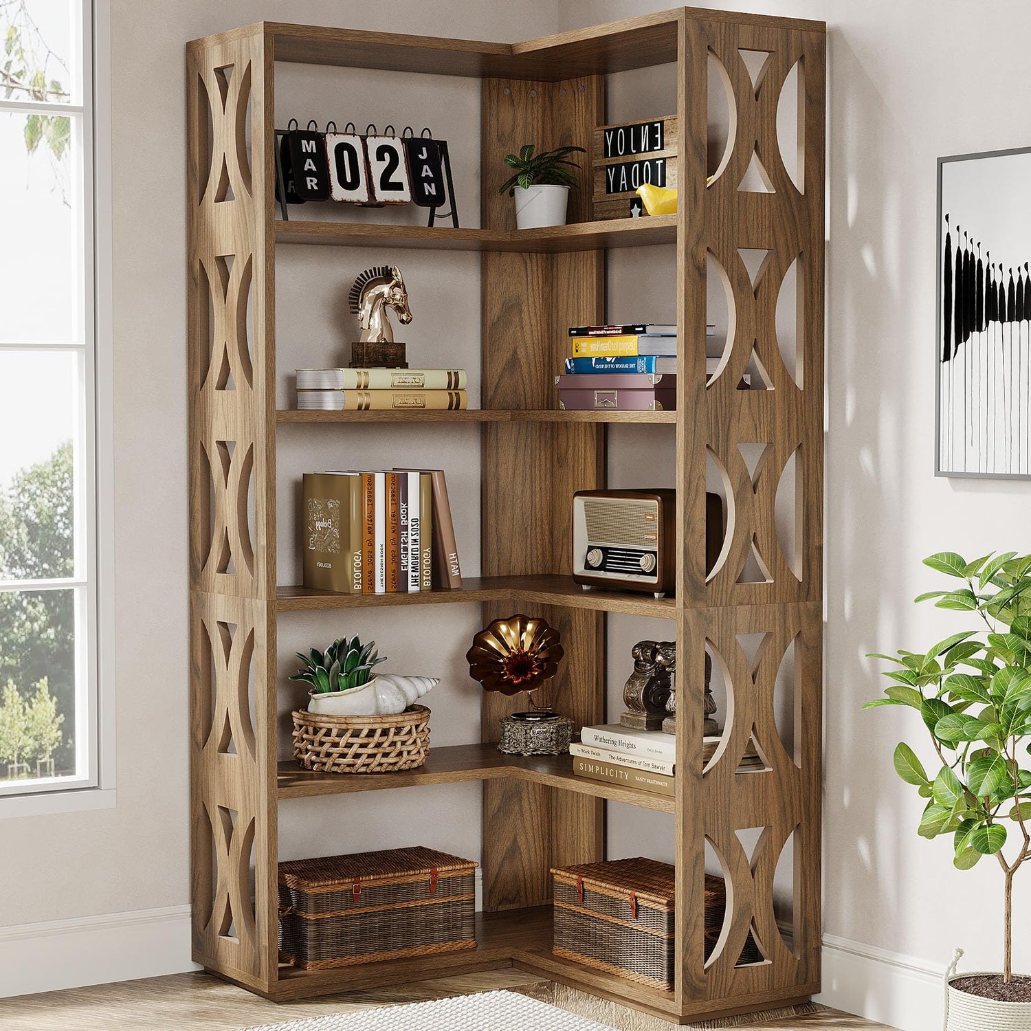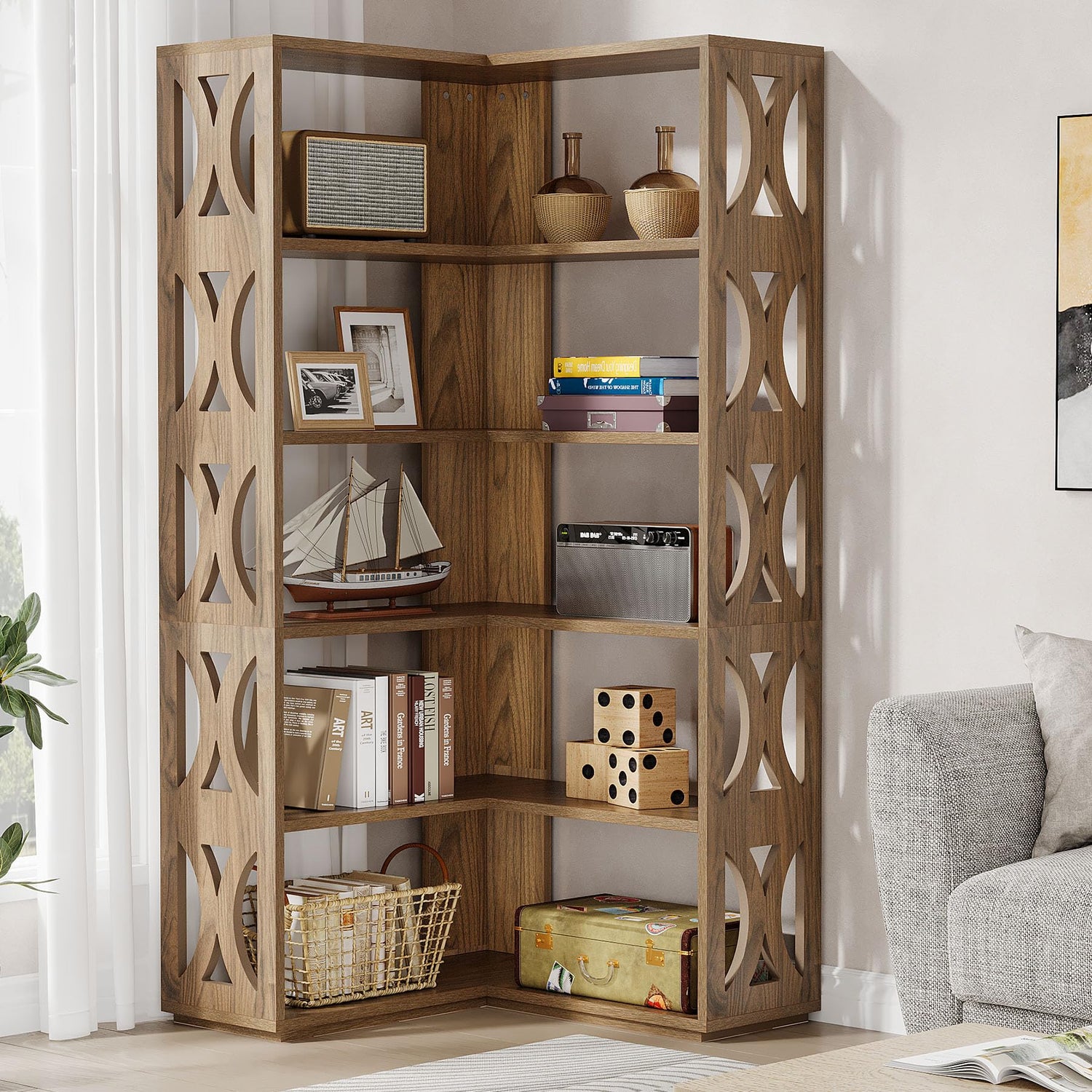 Upgrade your space with the Tribesigns Rustic 5-Tier L Shaped Corner Bookshelf—a perfect blend of style, durability, and practicality for all your storage needs.
