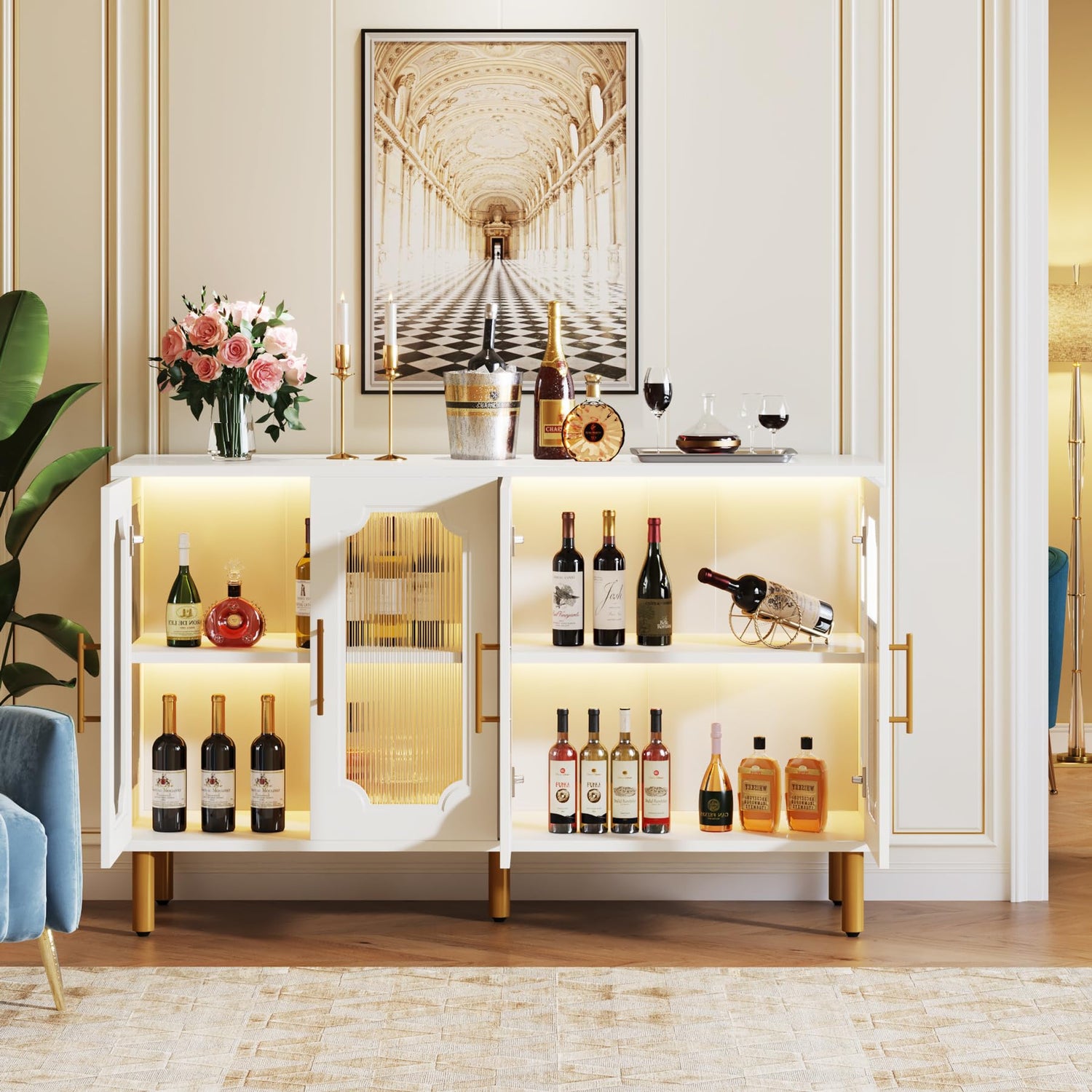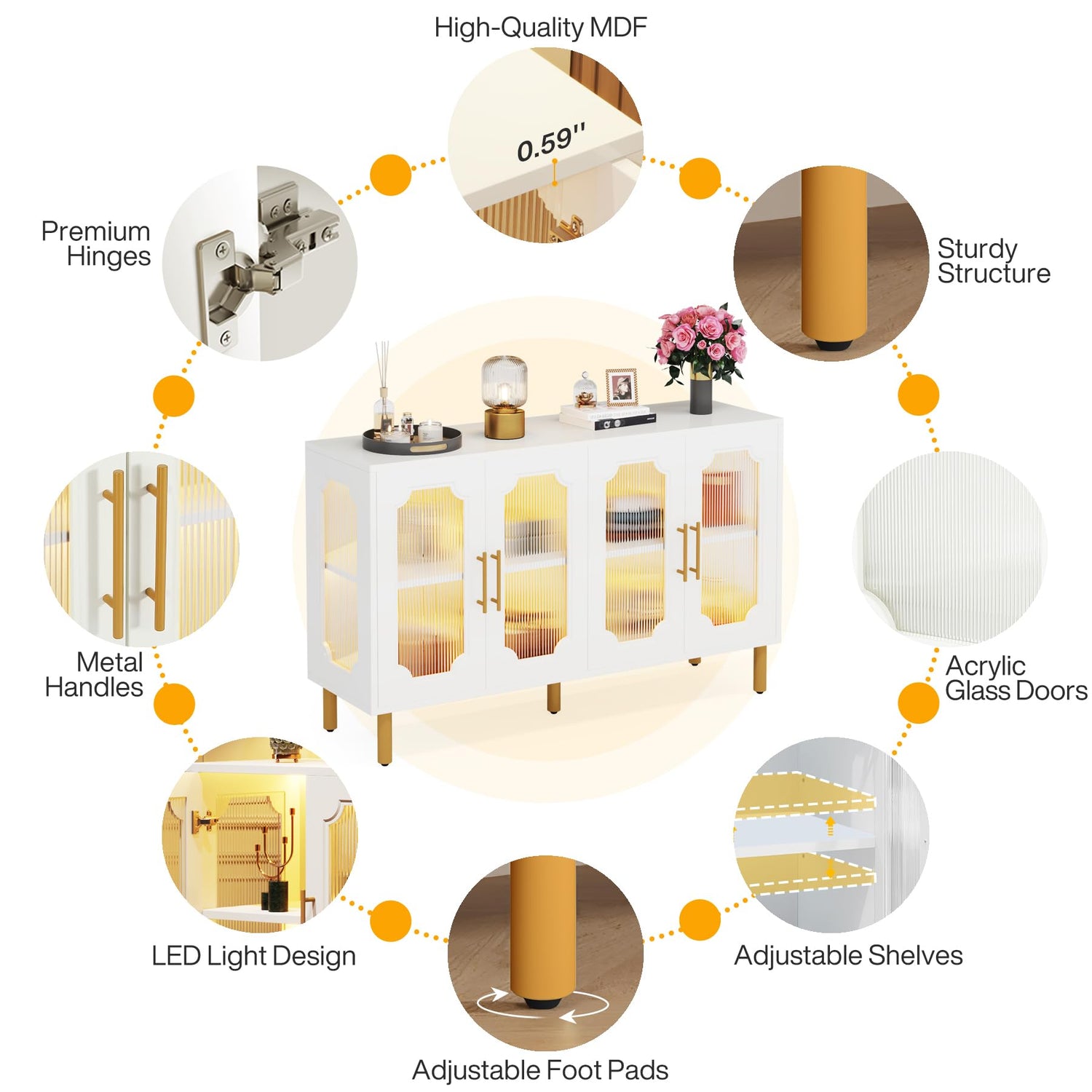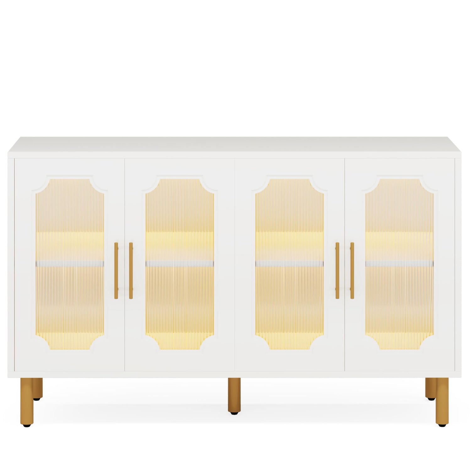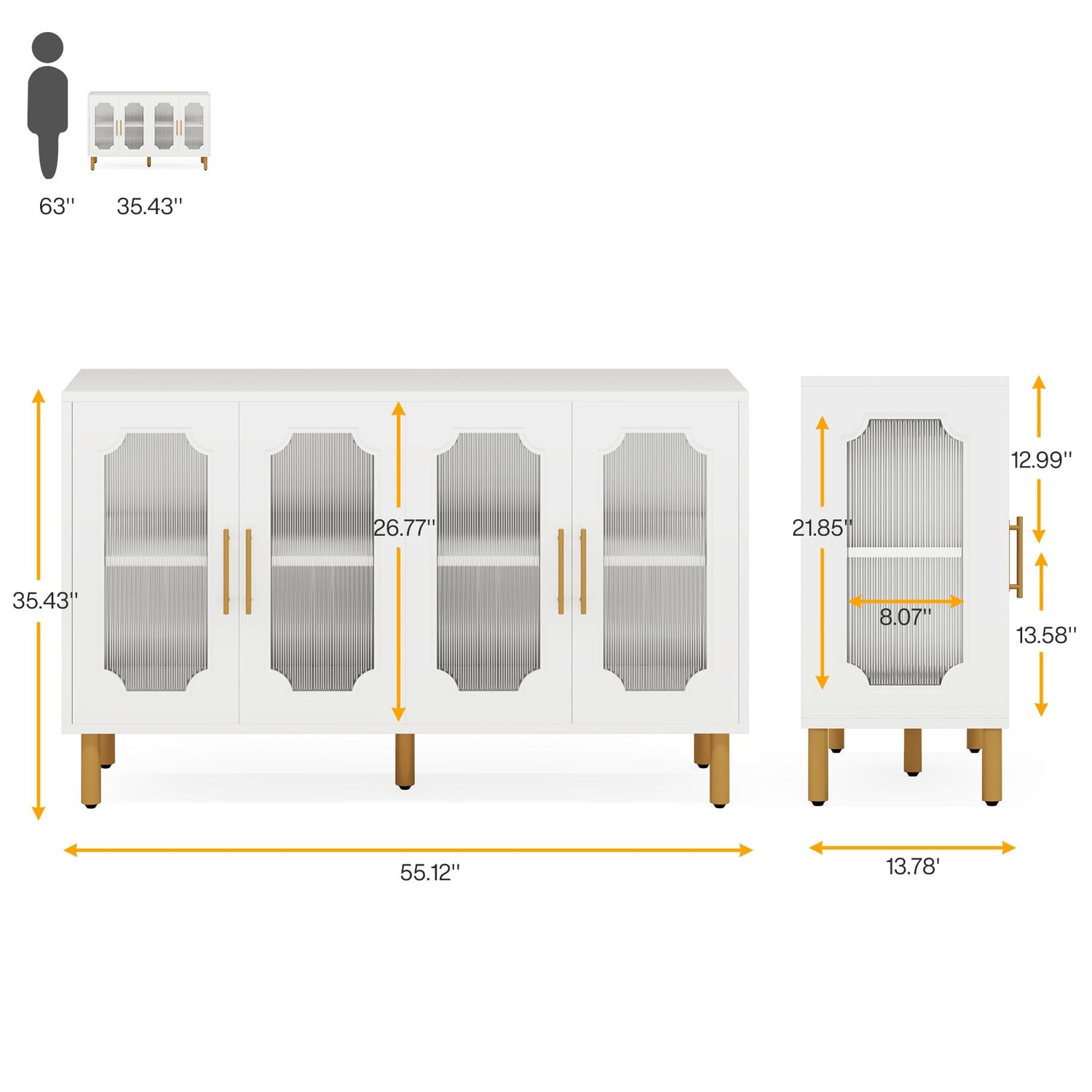 Tribesigns 55" Accent Cabinet with 4 Doors and Shelves, Modern Credenza Storage Cabinet with Acrylic Glass Doors, White Display Cabinet for Living Room, Bedroom, Kitchen, Dining Room, Hallway