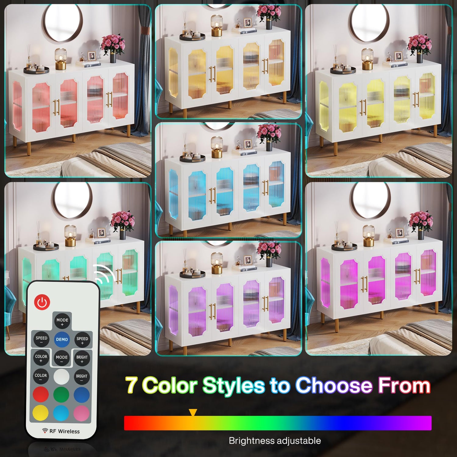 - 【Chic Accent Style】: The Tribesigns 55" accent cabinet combines classical and stylish design with modern metal handles and a decorative white finish. The beautiful multi-color RGB LED backlight and delicate acrylic glass doors add a unique and luxurious touch to your space. Easily clean the smooth and flat surface with a damp or dry cloth.