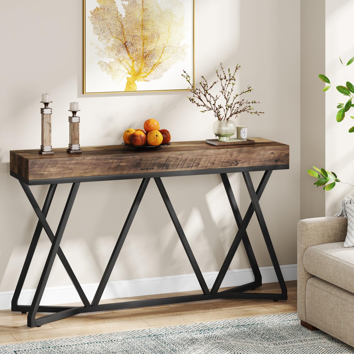Tribesigns 55 Inch Console Table, Farmhouse Sofa Table Wood Entryway Table with Unique Metal Base, Behind The Couch Table Foyer Table, Industrial Accent Table for Hallway, Living Room, Rustic Brown