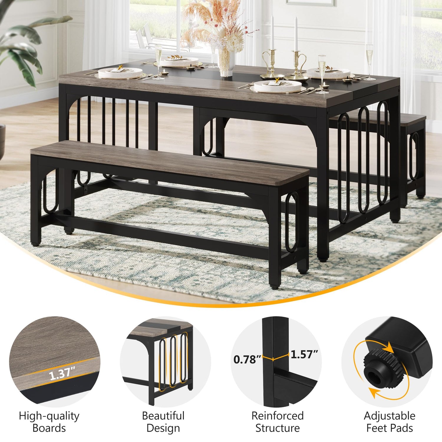 Tribesigns 55 Inch Dining Table Set for 4-6, 3-Piece Kitchen Table with 2 Benches, Space-Saving Dining Room Table Set for Home Kitchen, Restaurant, Grey