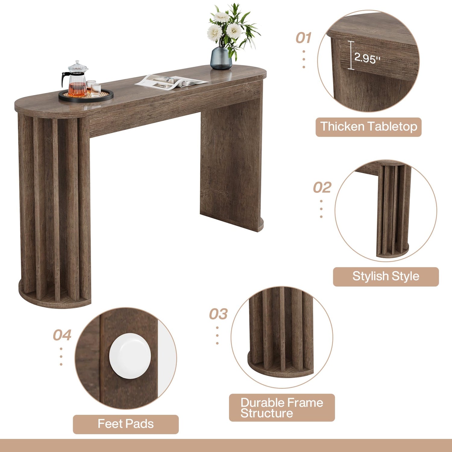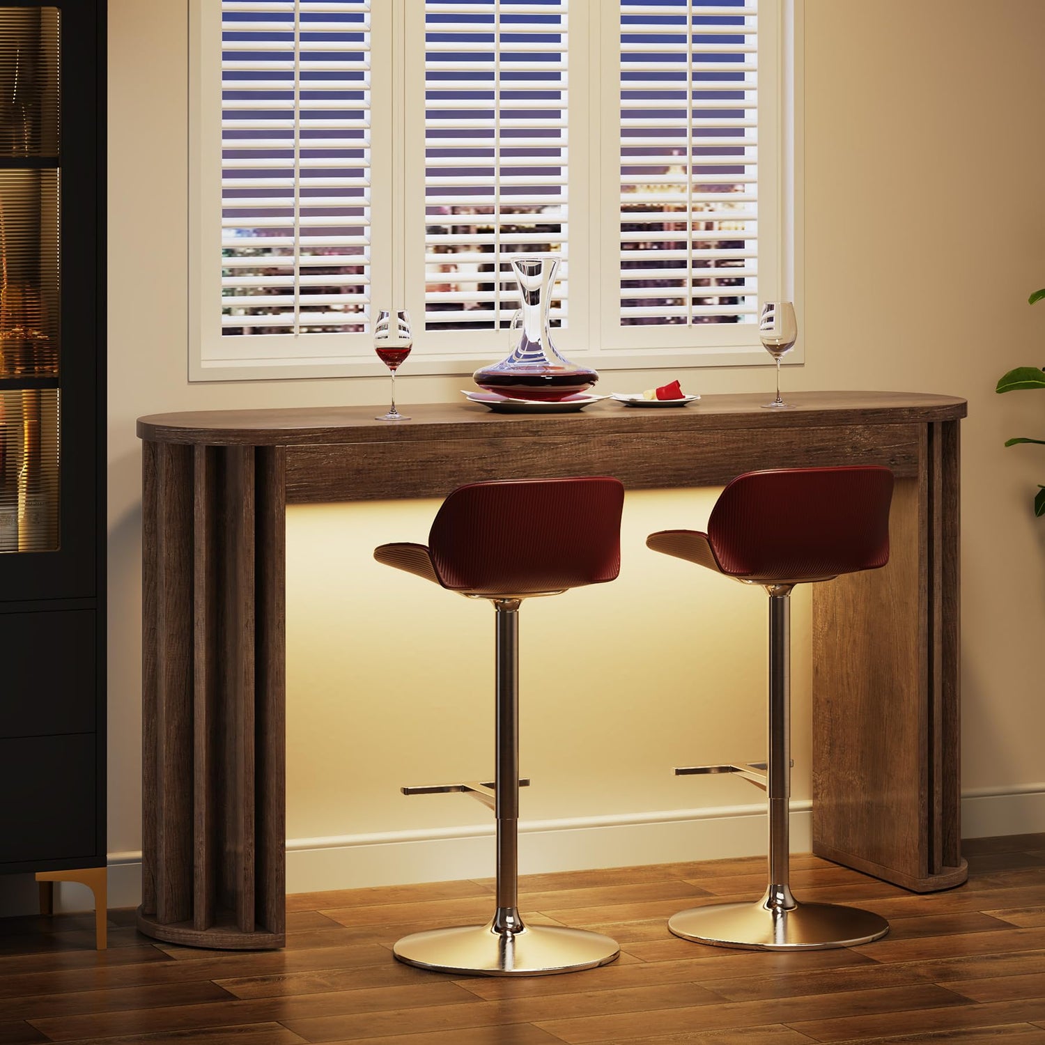 - Sturdy and Exceptionally Stable: With an arc-shaped tabletop design, the breakfast bar table shields against scratches and potential damage from unforeseen bumps. It features matching footpads at the base, protecting your floor from any scratches. The semi-cylindrical support columns, enhanced by seven vertical boards, offer improved stability. Remarkably stable, this table can comfortably bear up to 300 lb.