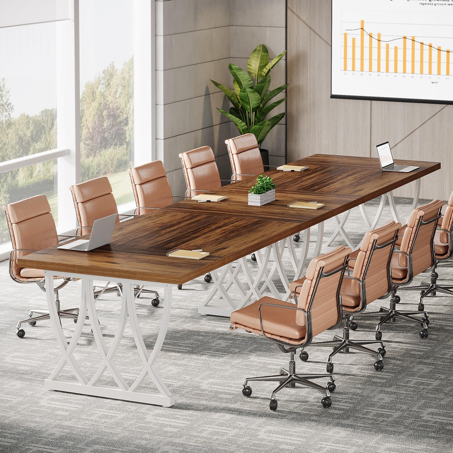 Tribesigns 6 ft Conference Table for 6-8 People, 70.86-Inch Rectangle Conference Table Meeting Seminar Table with Unique Curved Metal Support for Home Office (Retro Brown & White, Without Chair)