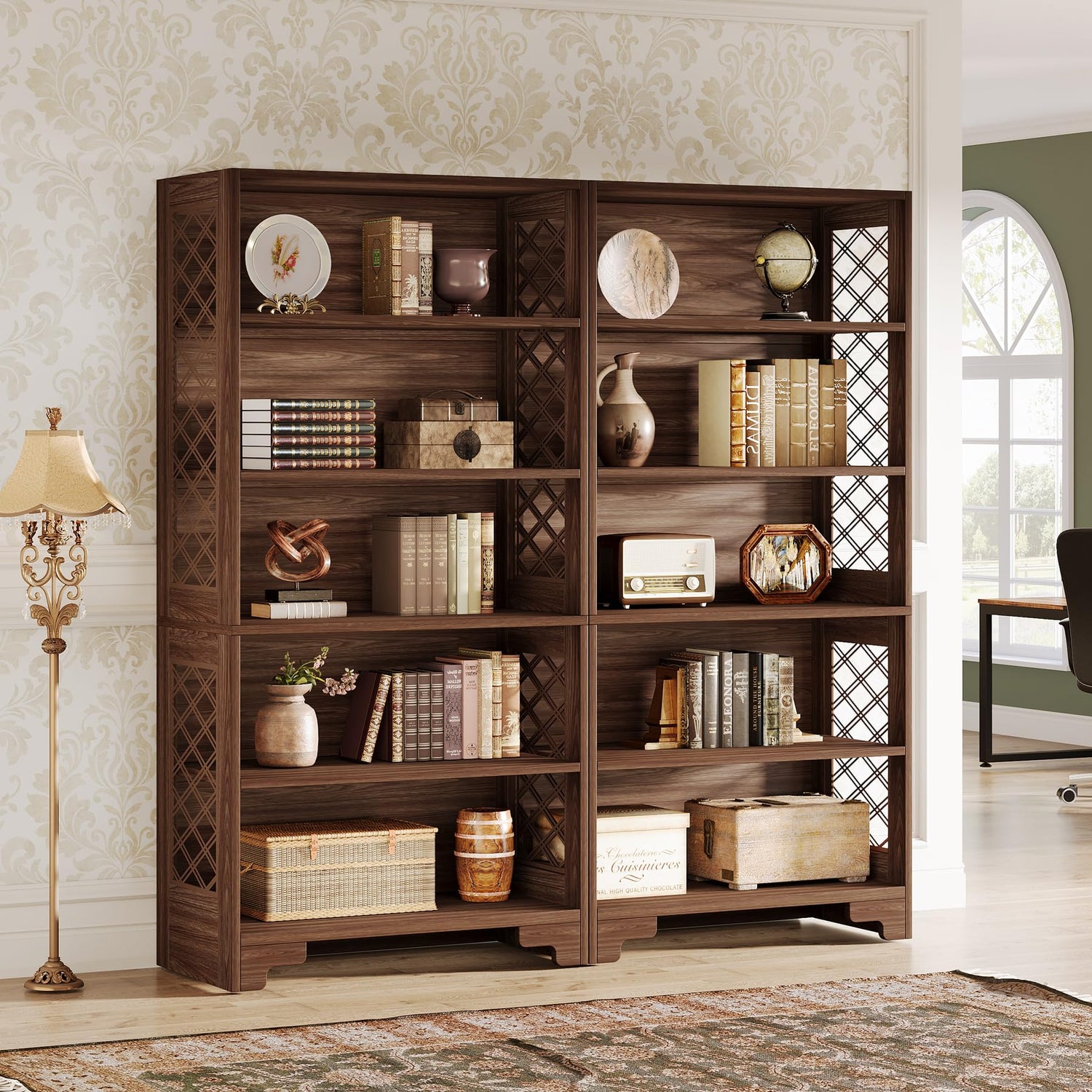 Tribesigns 6-Tier Bookcase, 70.8" Vintage Tall Bookcase,5-Shelf Mid-Century Display Rack Storage Shelves for Home Office, Living Room, Bedroom, Set of 2