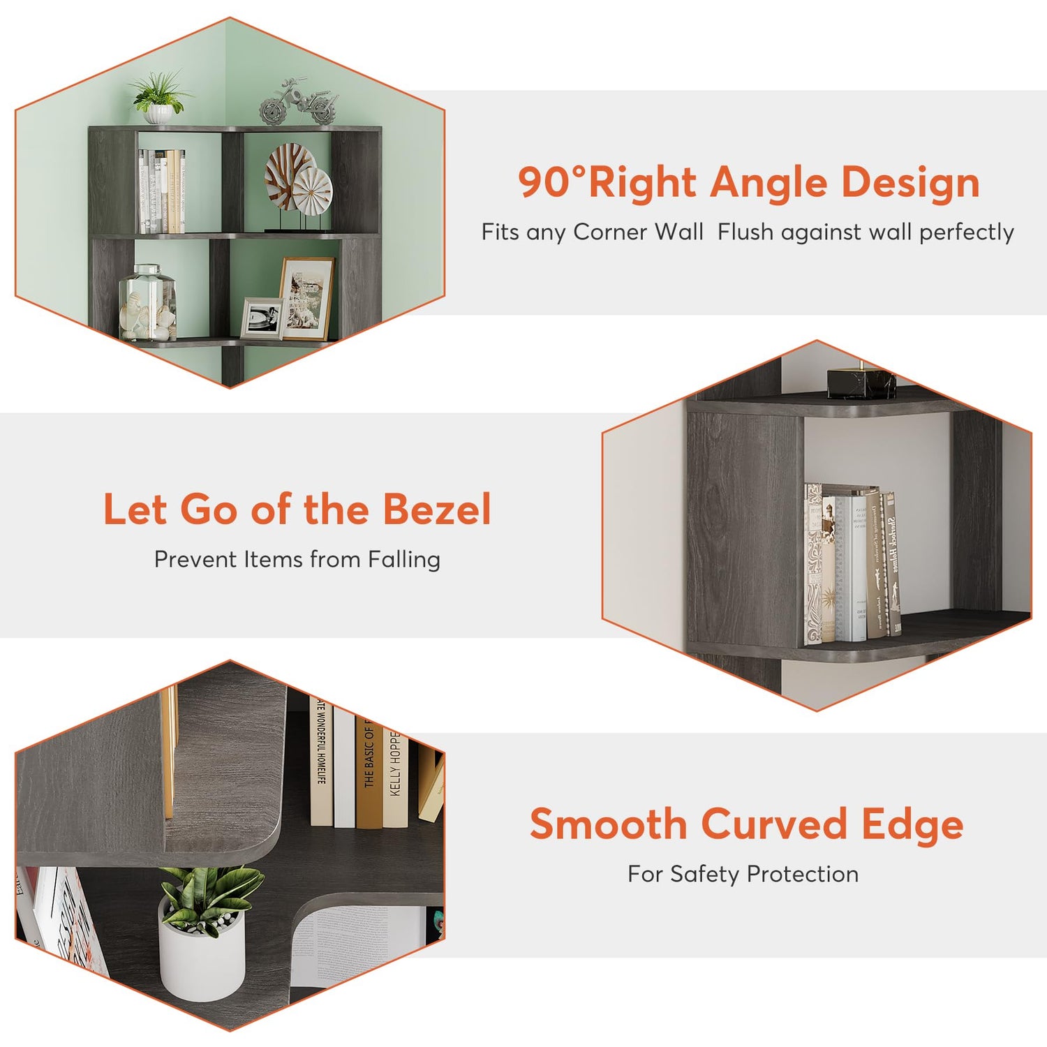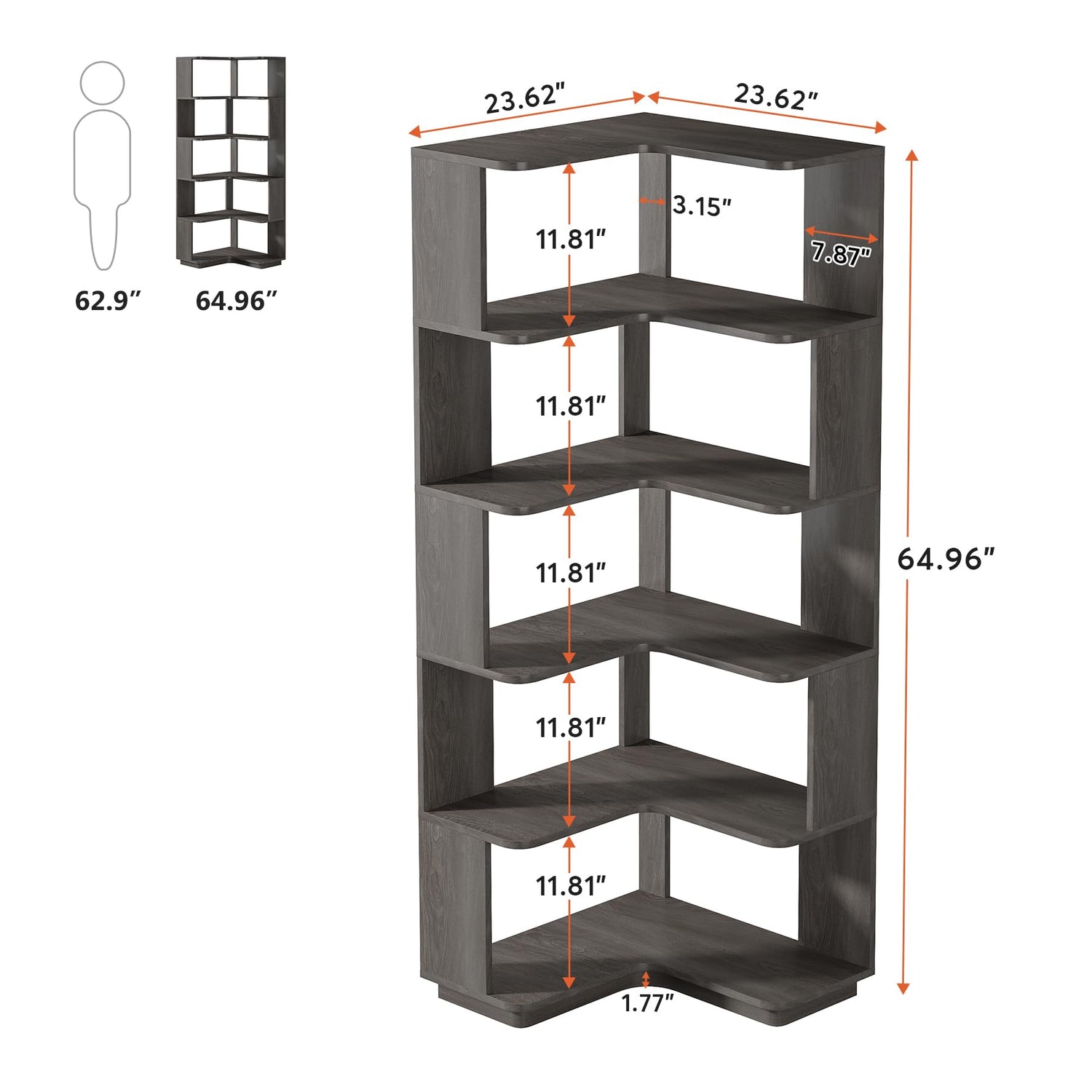 Tribesigns 6-Tier Corner Bookshelf, 64.9 Inch Tall Bookcase with Anti-Drop Panel, Industrial Freestanding Corner Shelf Display Rack Storage Organizer for Home Office, Living Room, Grey
