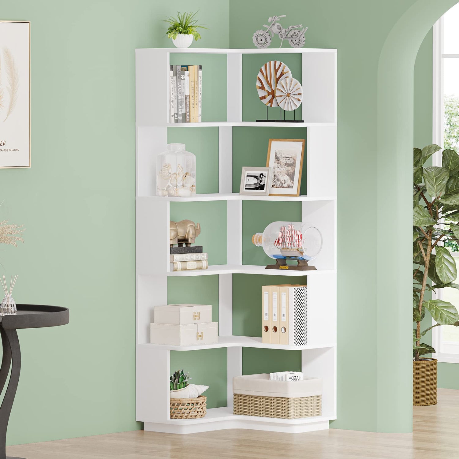Transform any corner of your home with the Tribesigns 6-Tier Modern Corner Bookshelf, thoughtfully designed to blend style and functionality. Standing at an impressive 64.9 inches, this freestanding storage organizer in a sleek white finish not only enhances your decor but also optimizes your space.