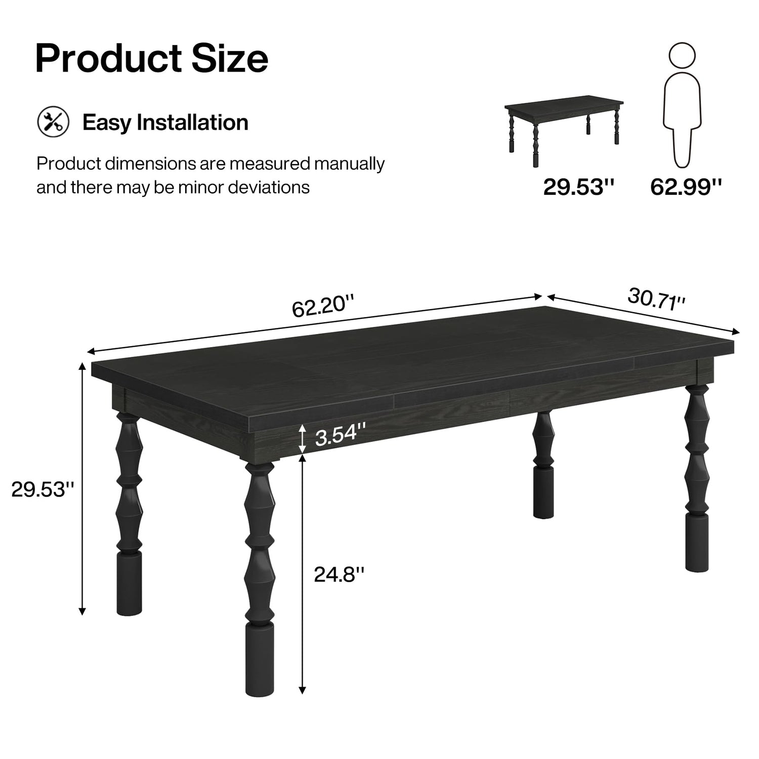 Tribesigns 62” Wood Dining Table for 4-6 People, Farmhouse Large Rectangle Kitchen Table, Modern Dinner Table Kitchen & Dining Room Furniture with Carved Turned Legs