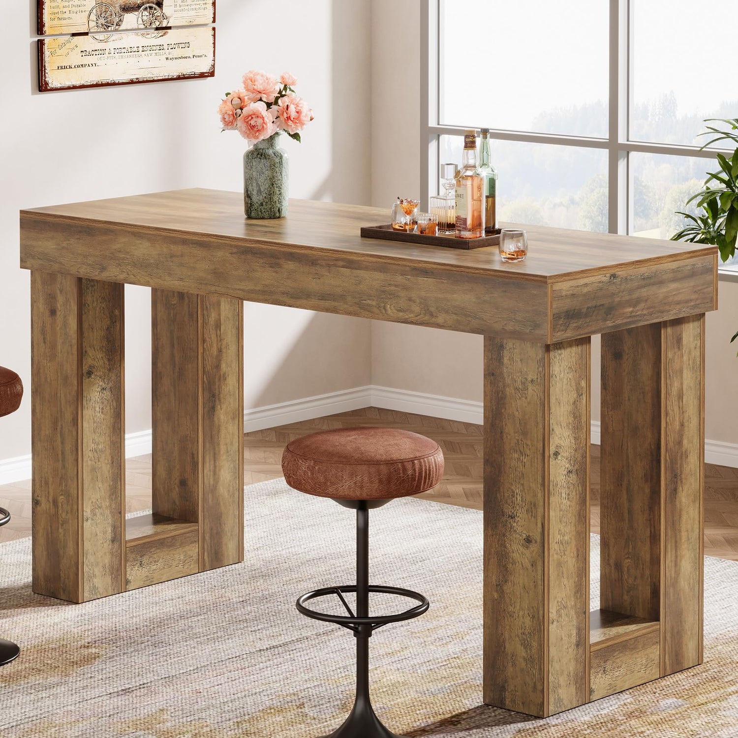 Tribesigns 63-Inch Counter Height Bar Table, High Top Pub Table with Sturdy Rectangular Base, for Home Living Room Coffee Kitchen Restaurant, Dining Room, Rustic Brown
