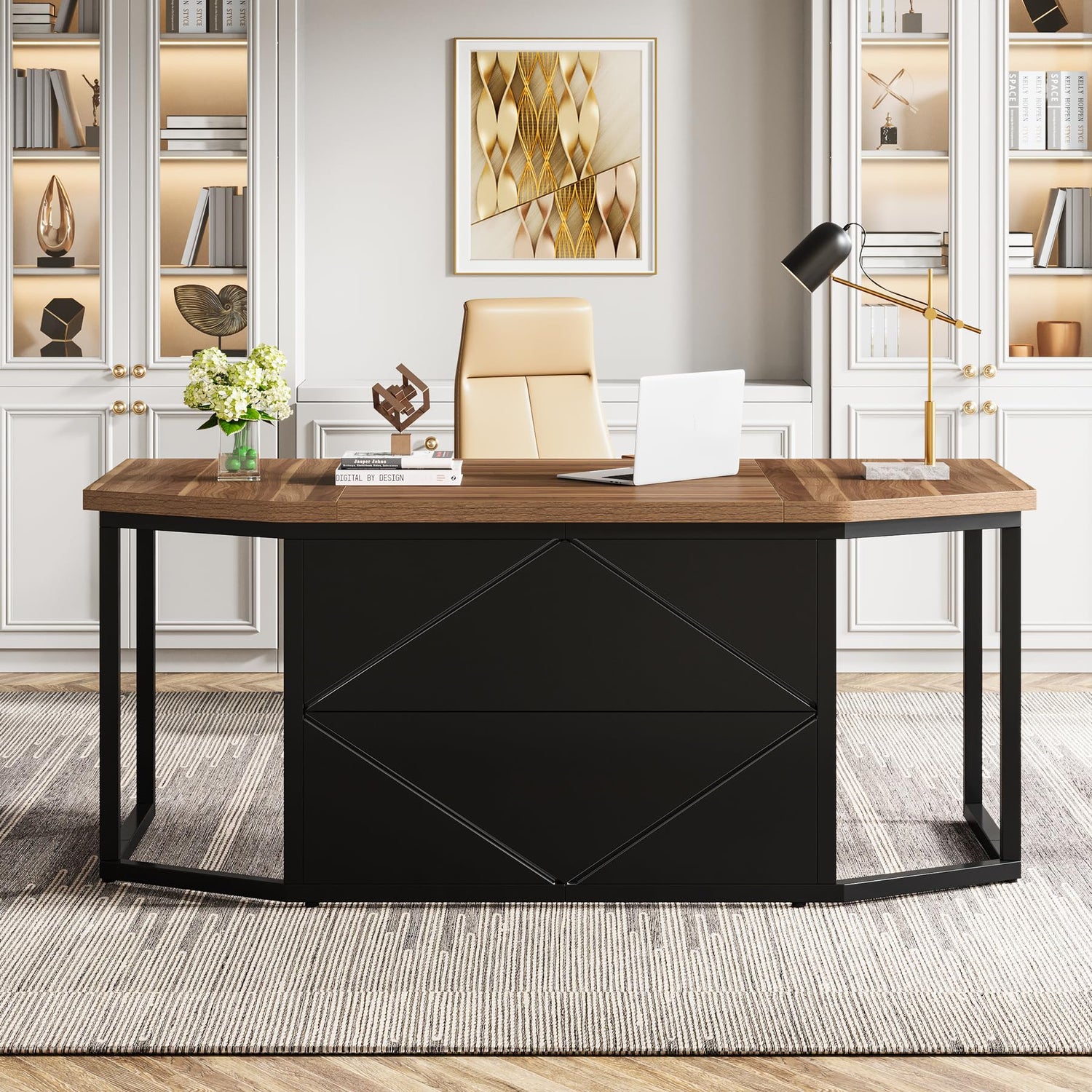 - 【Support Multiple Scenarios】Designed in an industrial simple style, this Tribesigns executive desk is versatile, suitable for different settings such as living rooms, bedrooms, and offices. It caters to various users including, freelancers, and executives, functioning as an ideal study or work desk.