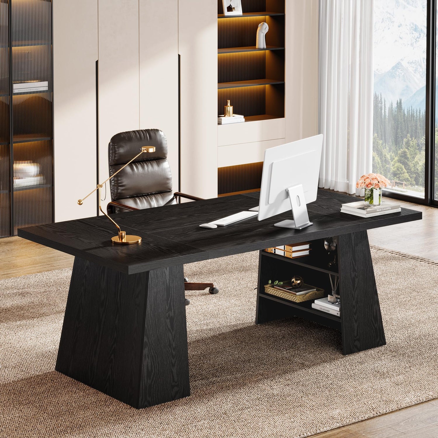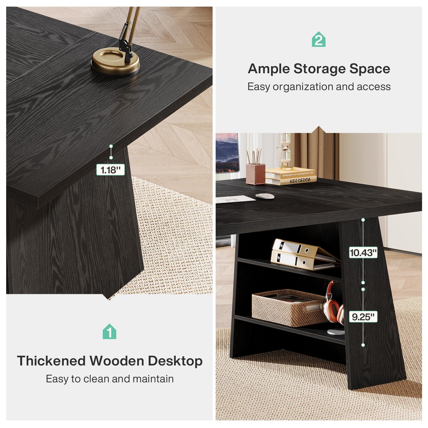 Tribesigns 63-Inch Executive Desk, Modern Large Office Computer Desk with Double Pedestal and Storage Shelves, Simple Writing Conference Table Workstations Business Furniture for Home Office, Black
