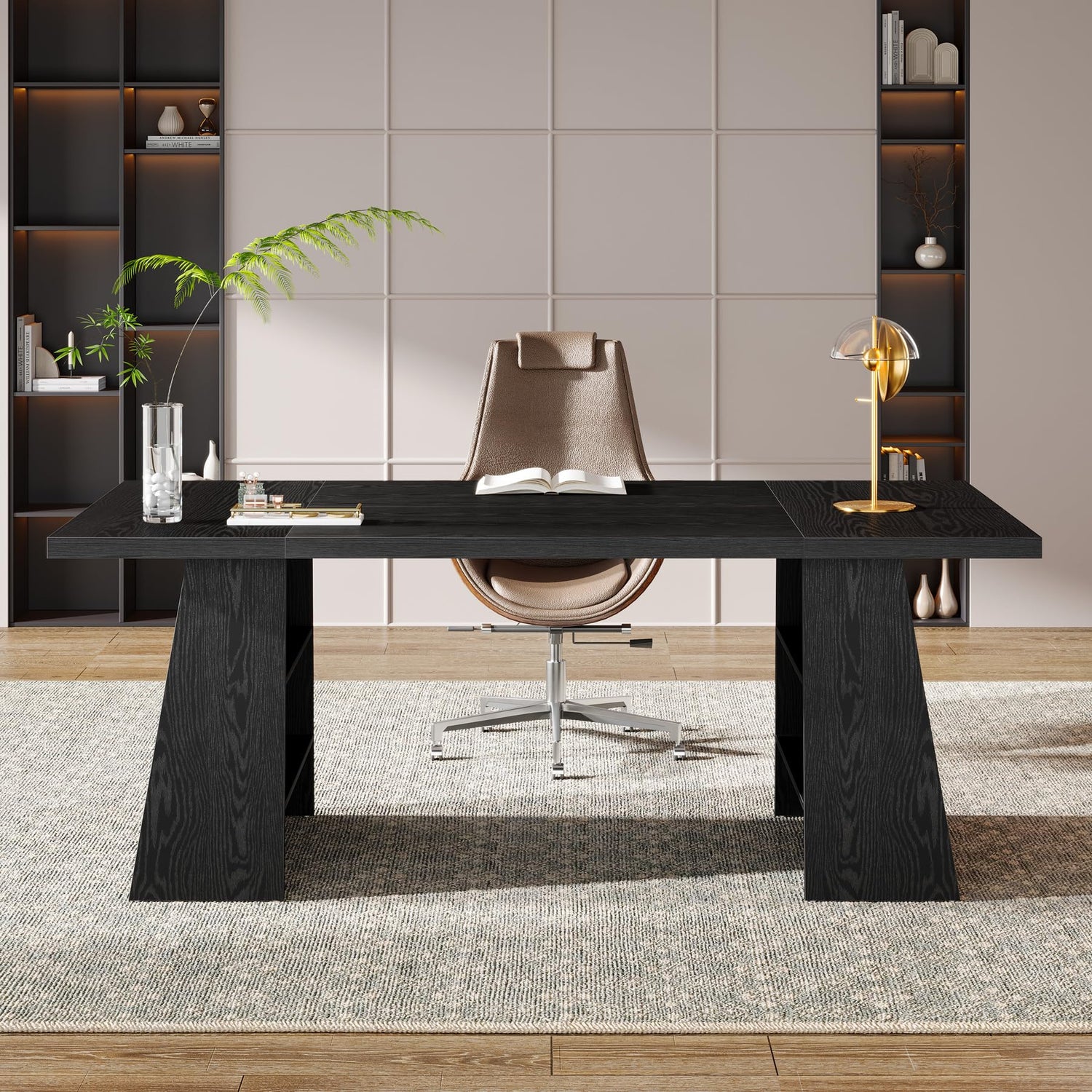- Chic & Practical: This black desk, with a smooth MDF surface and sturdy double pedestal base, adds sophistication to any workspace. Perfect as a computer desk, conference table, writing desk, or dining table, it seamlessly blends style with functionality