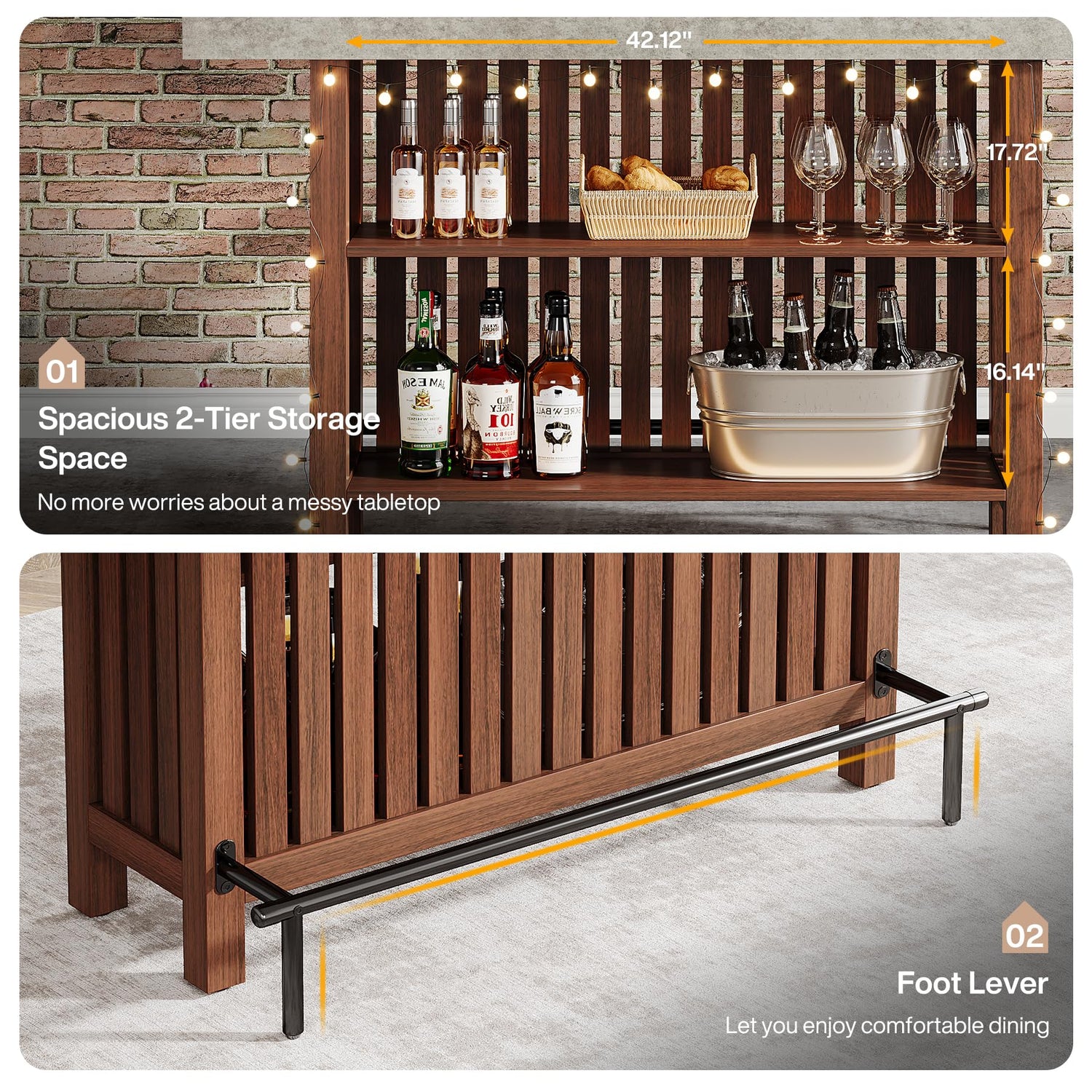 - Sturdy and Strong Build: Exuding quality and longevity, this home bar table is expertly crafted using 3.97" thickened panels and a robust frame, while the sturdy footrest is furnished with adjustable foot pads for additional stability. The open-shelf approach adds an aesthetic appeal while ensuring that your items are kept securely, thanks to the side guardrails to prevent accidental falls.