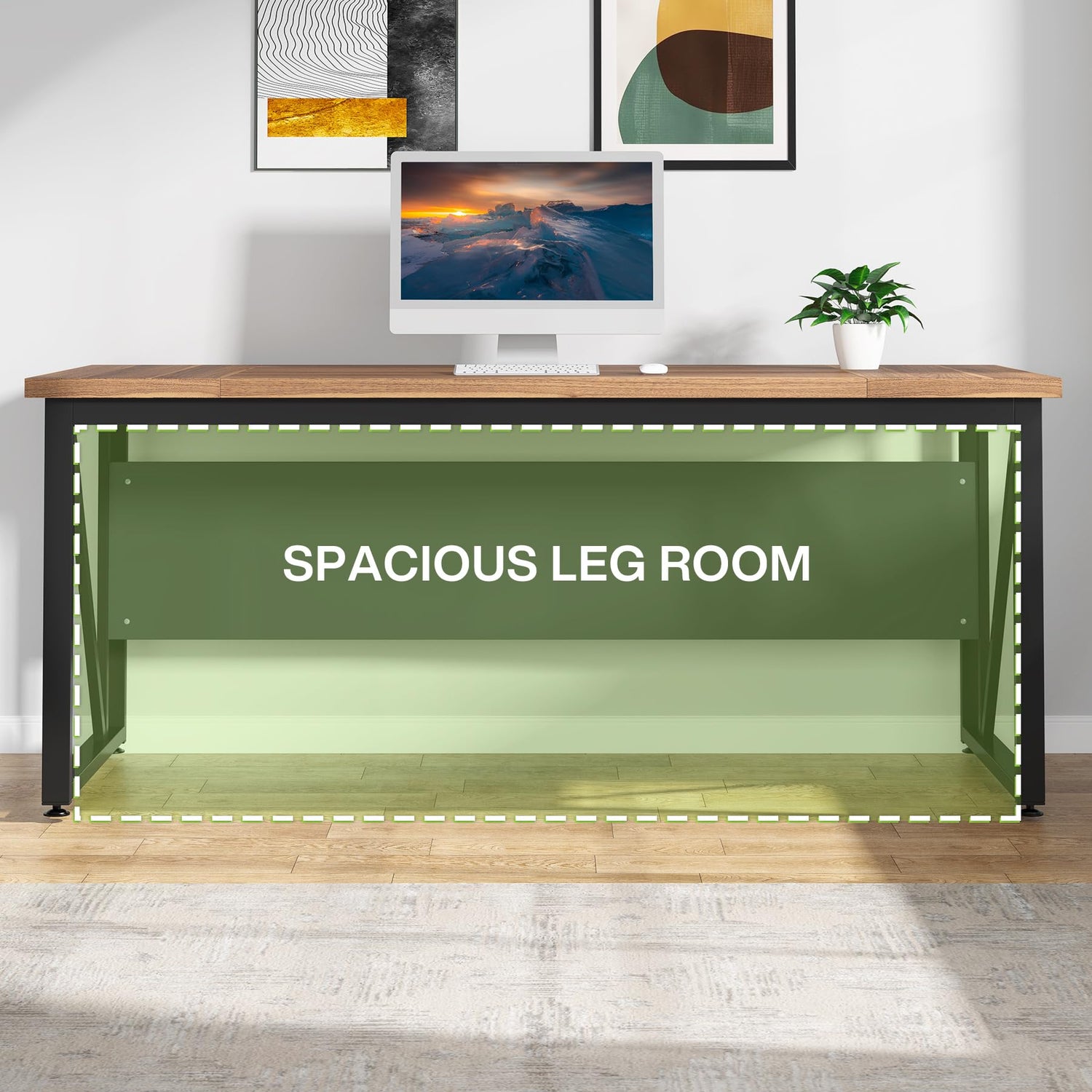- 【Stable& Sturdy Construction】: The office desk constructed of heavy-duty metal frame and thickened compressed board (1.2 inch) ensure durability and stability. The front baffle of the computer desk provides privacy in conjunction with structural support for the bottom. Make sure to long term use