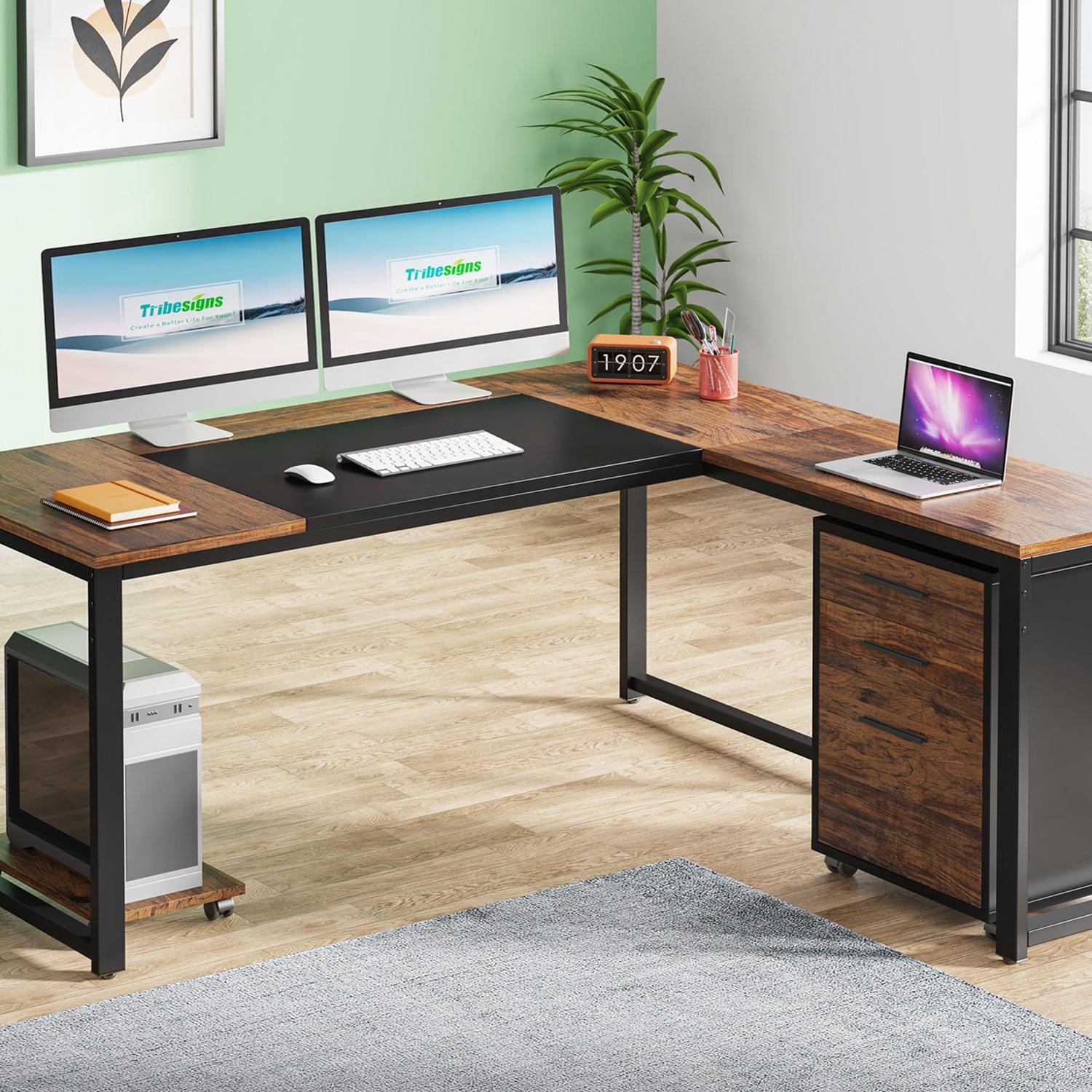 Tribesigns 63" L-Shaped Computer Desk with Mobile File Cabinet, Large Executive Office Desk with 3-Drawer Vertical Filing Cabinet, Business Furniture Sets for Home Office