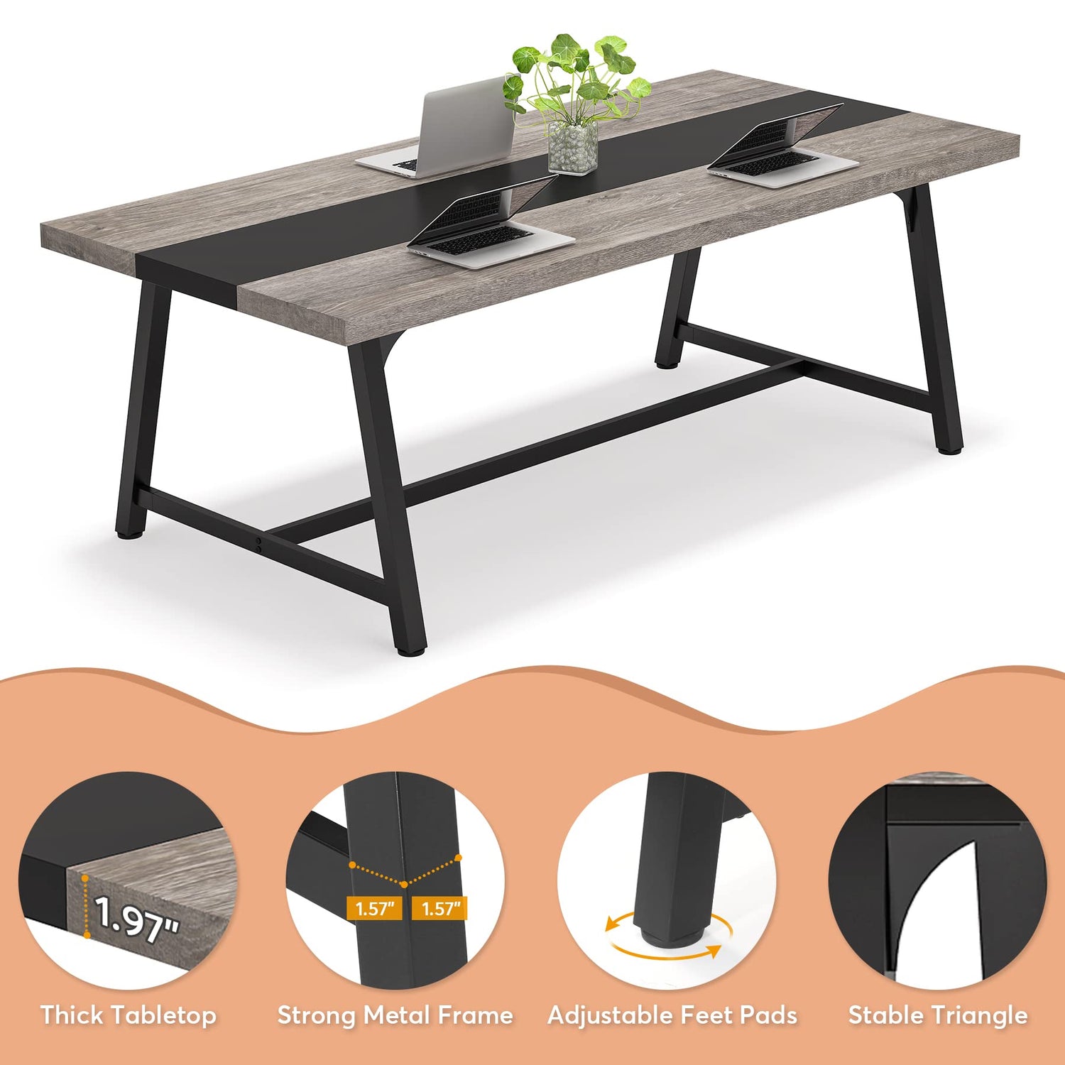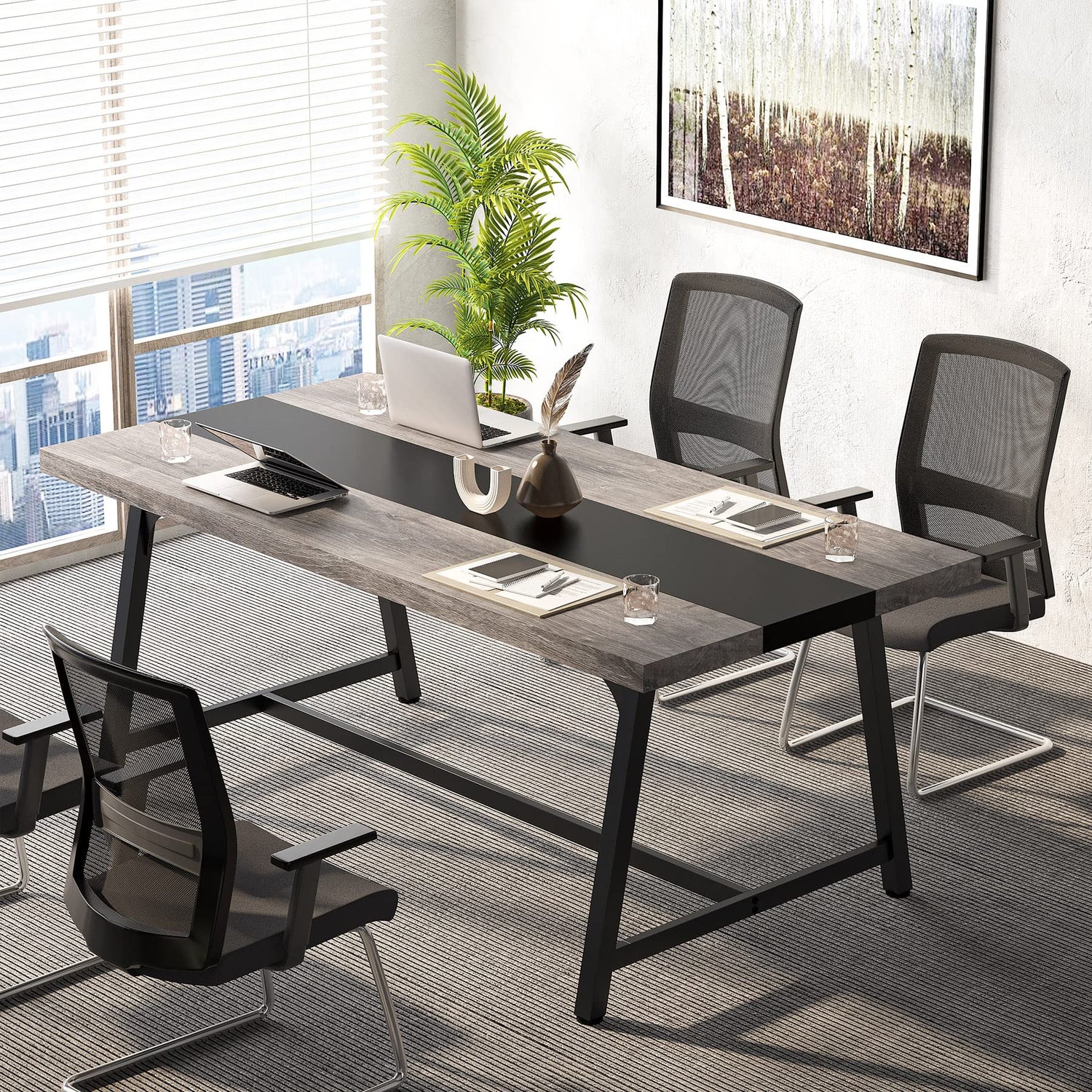 - [Ample Working Area]: Measuring 70.87"W x 36.46"D, this meeting table comfortably seats 6-8 people. Ideal for team meetings, discussions, and co-creation sessions, the spacious tabletop provides plenty of room for files, books, laptops, or any other work necessities.