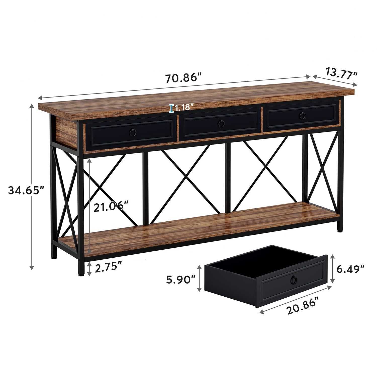 Tribesigns 70.8" Console Table with 3 Drawers, Farmhouse Entryway Table with Storage Shelf, Narrow Long Sofa Foyer Table for Entryway, Hallway (Brown/Black)