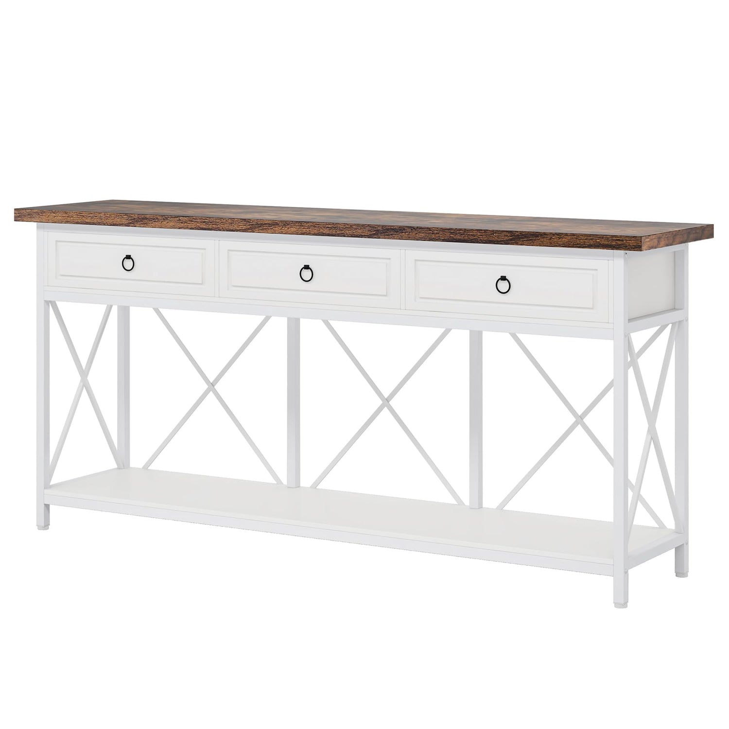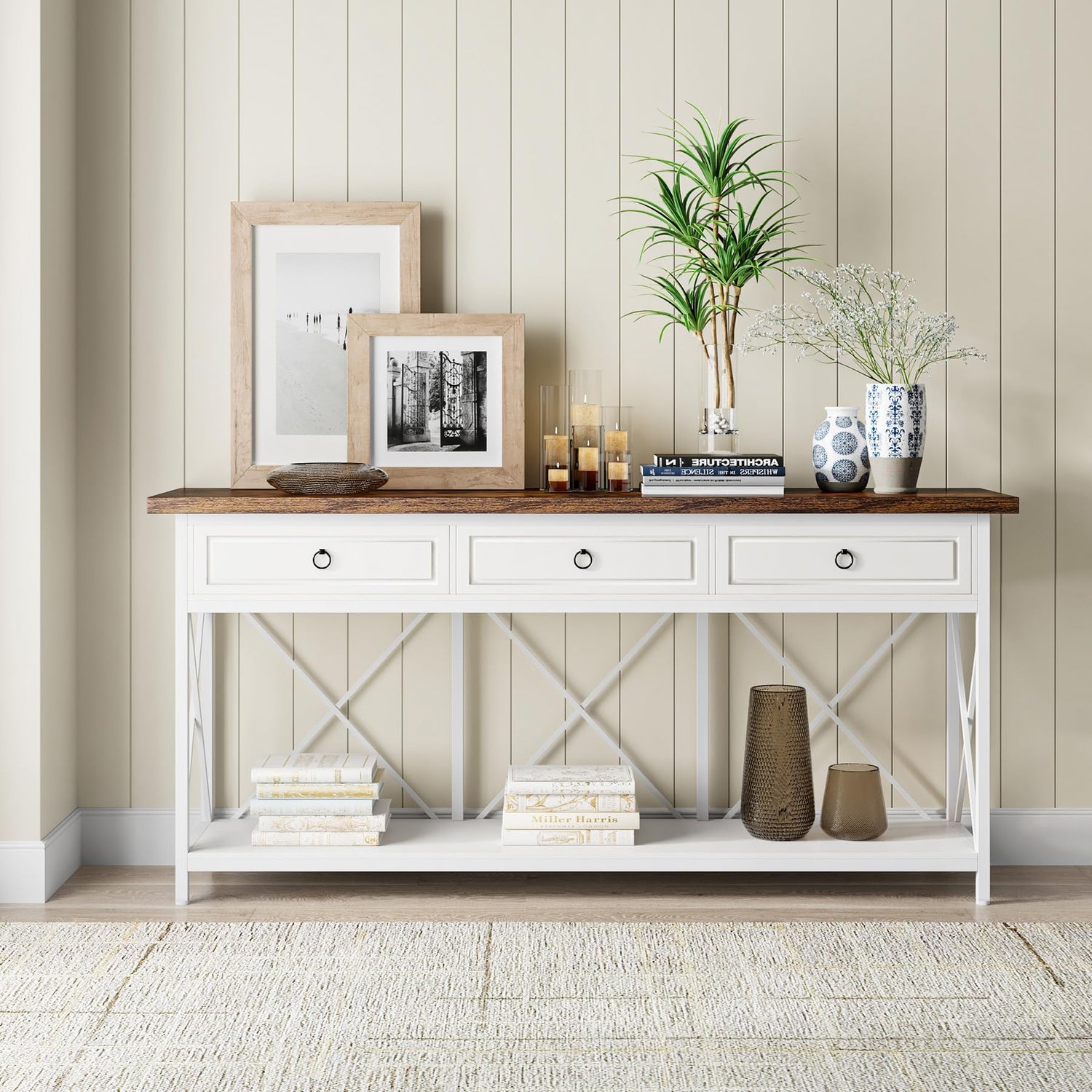 Tribesigns 70.8" Console Table with 3 Drawers, Farmhouse Entryway Table with Storage Shelf, Narrow Long Sofa Foyer Table for Entryway, Hallway (White/Brown)
