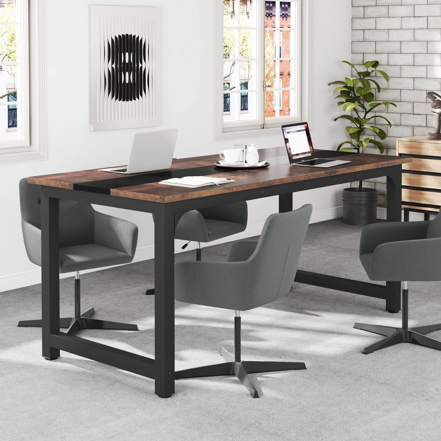 Tribesigns 70.8”Executive Desk, Large Office Computer Desk with Thicken Frame, Modern Simple Workstation Business Furniture for Home Office, Vintage Brown/Black
