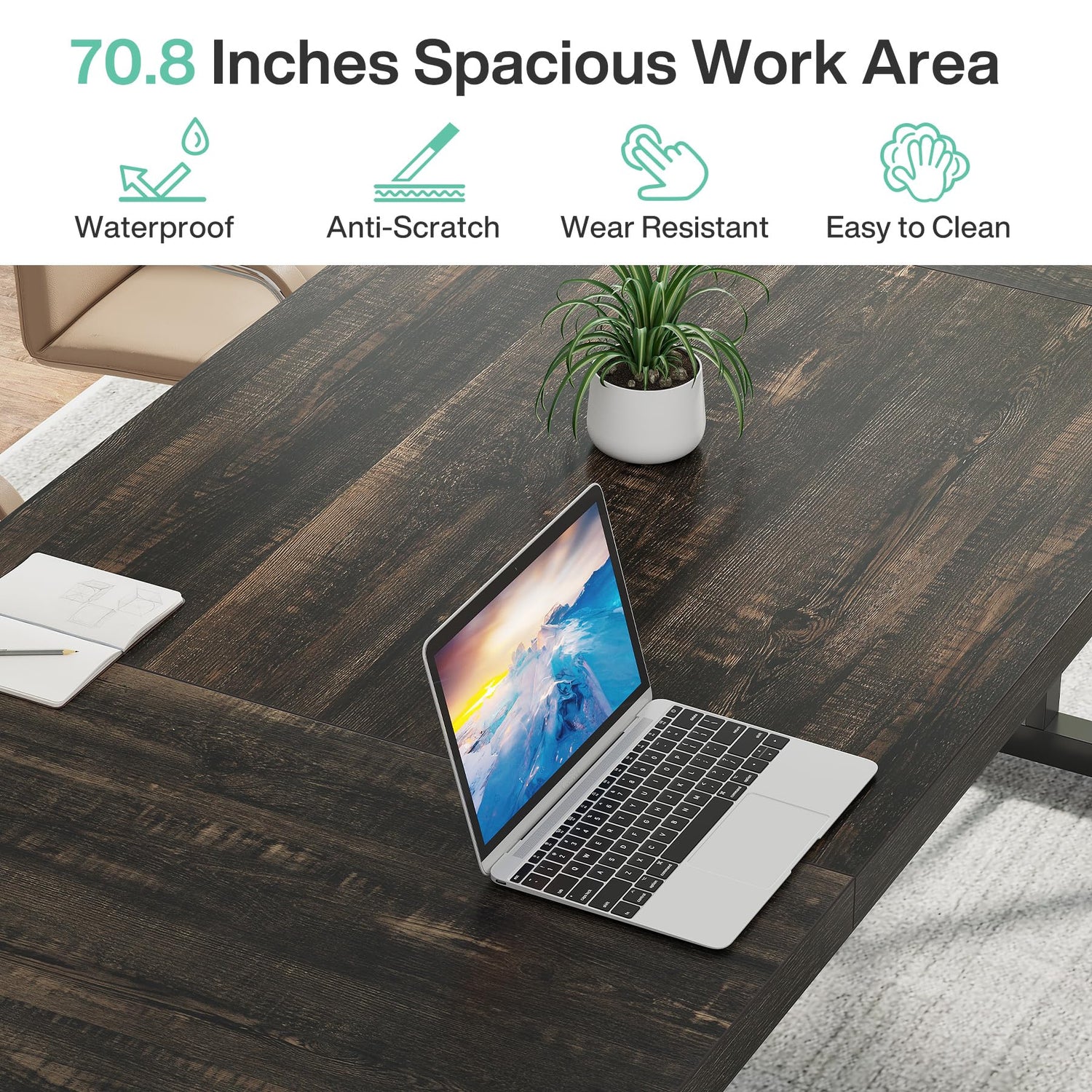 Tribesigns 70.8-Inch Executive Desk, Large Computer Office Desk Workstation, Modern Simple Style Laptop Desk Study Writing Table Business Furniture for Home Office (Black Oak, 70.8 Inch)