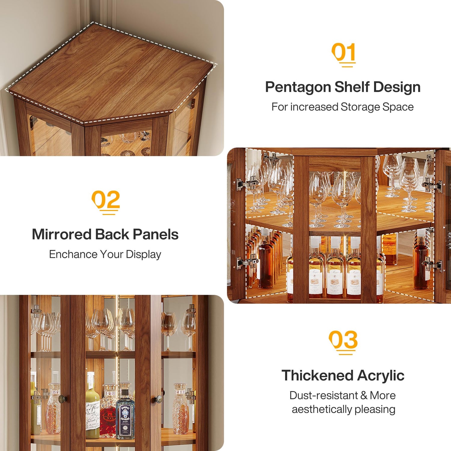 - Display Function: The doors of this corner dislplay cabinet are equipped with smooth and thick acrylic panels, and the internal mirror reflection enhances the display of your prized wine collection. The door design also effectively keeps dust out