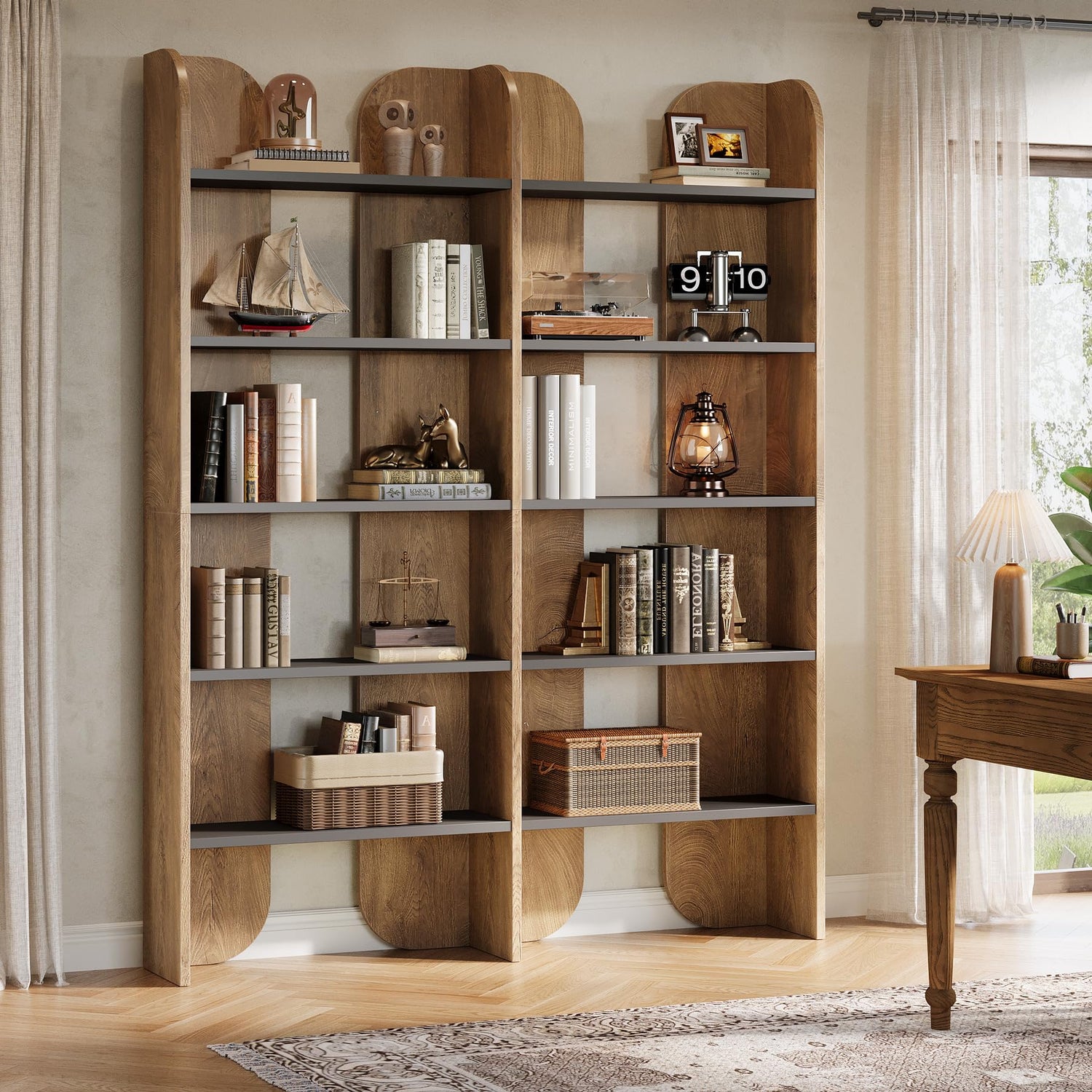Tribesigns 70.87" Tall Farmhouse Bookshelf, 5-Tier Double Wide Bookcase with Open Shelves, Vintage Bookshelf for Living Room, Office, Study Room, Bedroom (1, Brown+Black)