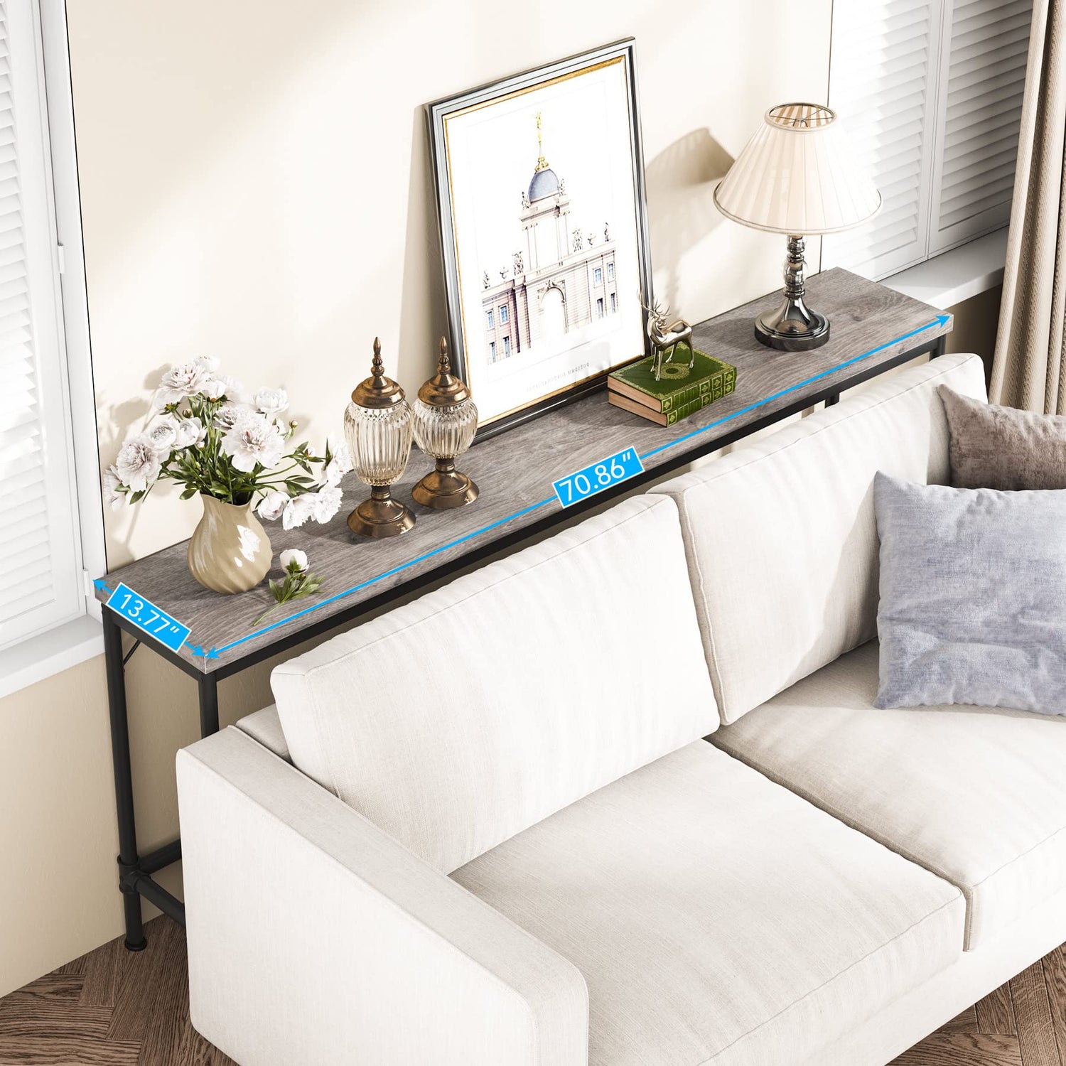 Tribesigns 70.9 Inch Extra Long Console Table, Narrow Long Sofa Table Behind Couch, Rustic Grey Entryway Hallway Table Industrial Height Bar Table for Living Room