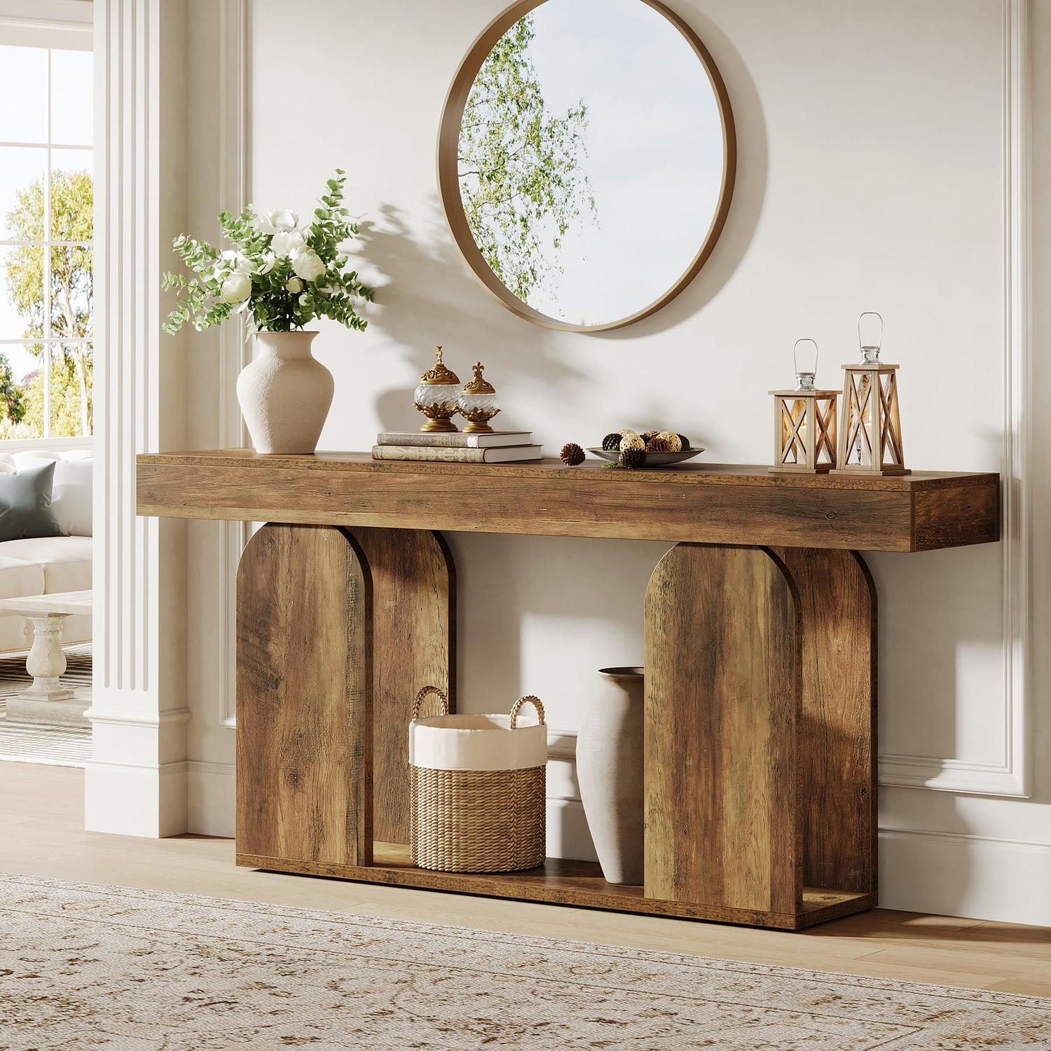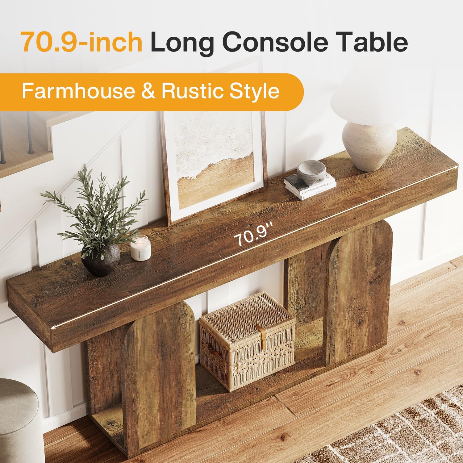 Tribesigns 70.9-Inch Extra Long Sofa Table, Farmhouse Console Tables with Wood Frame and Storage Shelf, 2-Tier Wood Table Behind Couch for Living Room, Hallway, Foyer, Vintage Brown