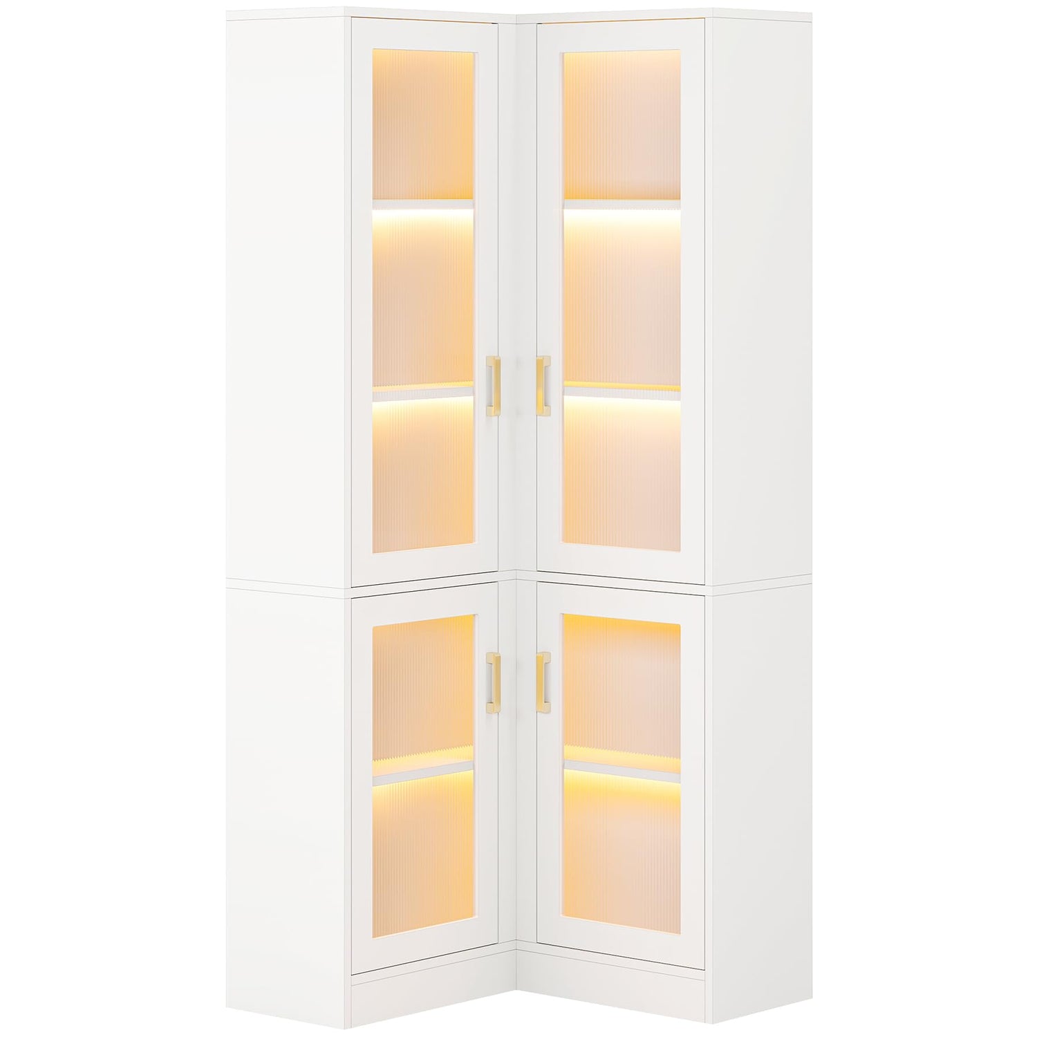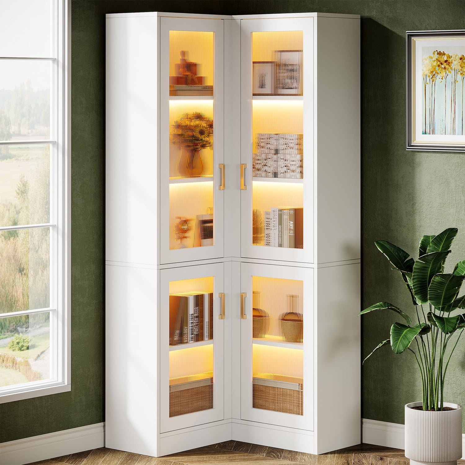 Tribesigns 70.9" Tall Bookcase with LED Light, Modern 5-Tier Bookshelf Display Cabinet with 4 Acrylic Doors, L-Shaped Corner Storage Cabinet for Bedroom Living Room Office, White