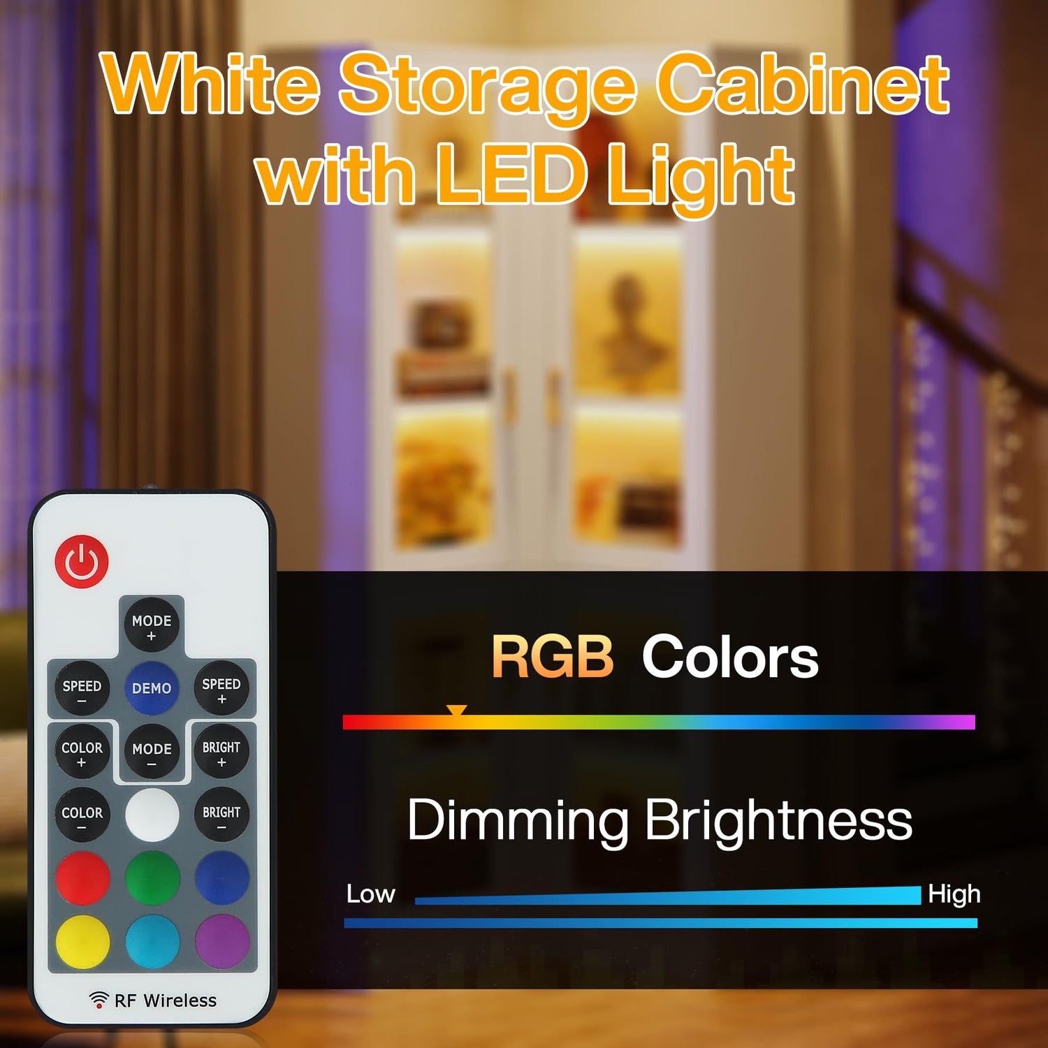 - LED Display Cabinet: Equipped with 7 adjustable light modes and brightness, the cabinet allows you to select your preferred color at any time. This not only makes the retrieval of items in the dark a breeze but adds a sparkle to your space