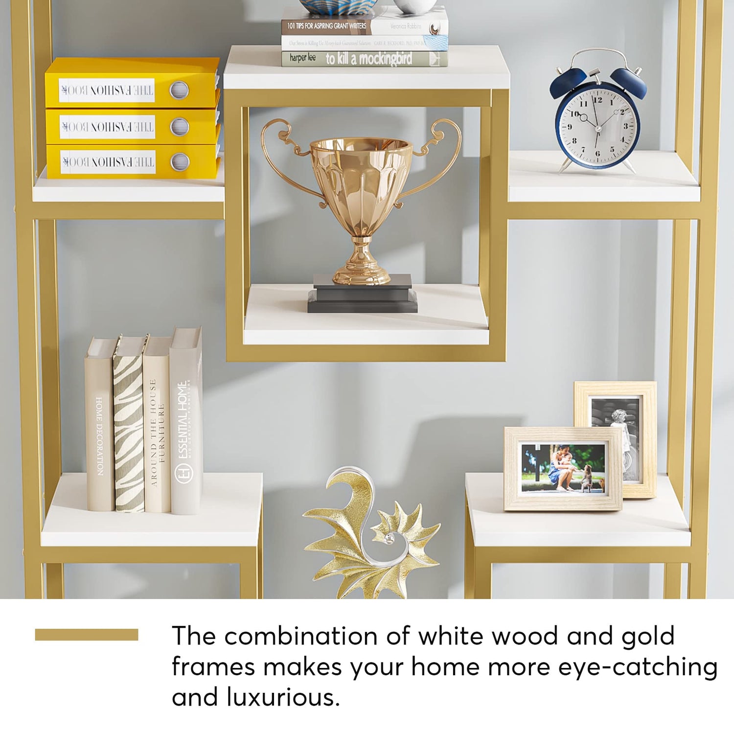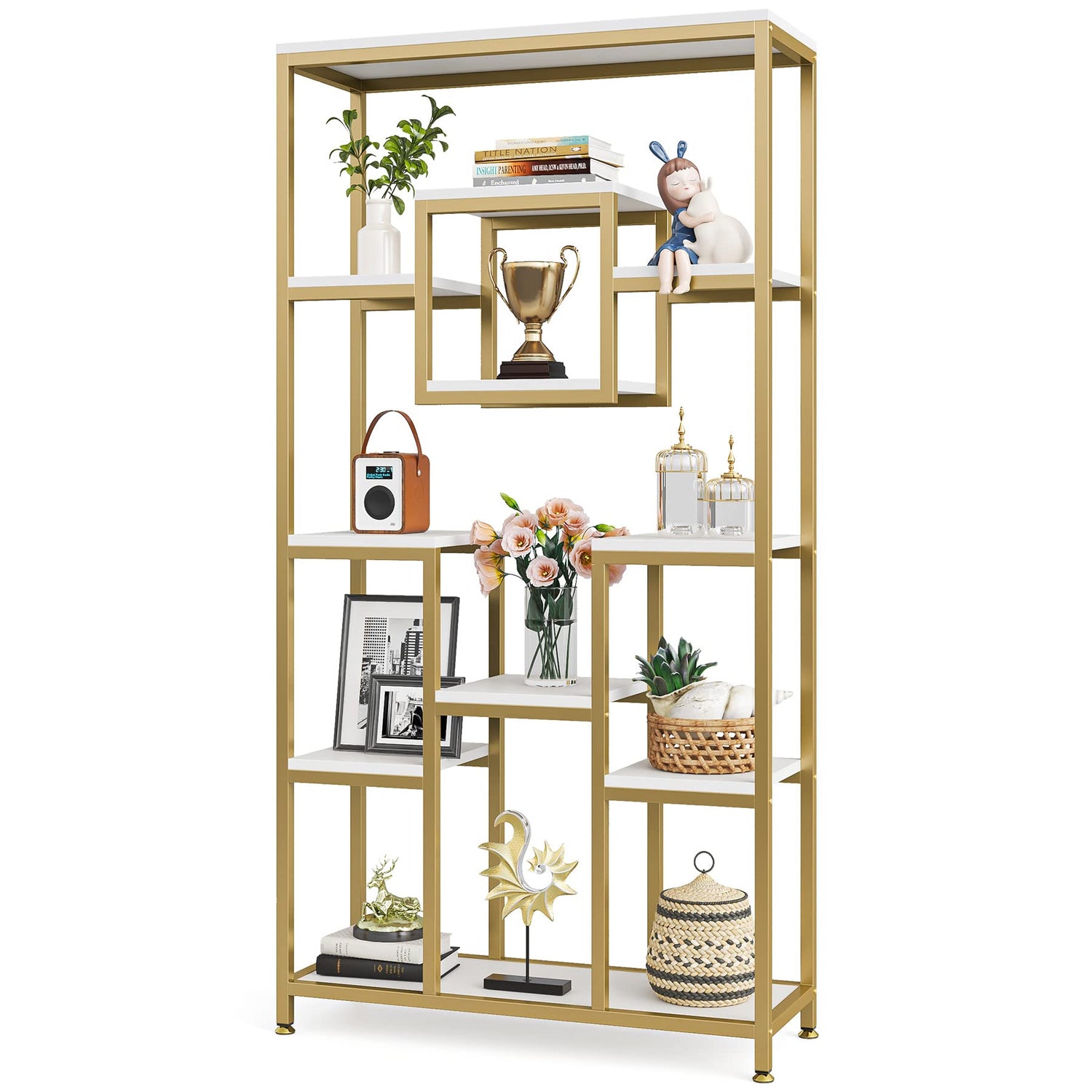 Tribesigns 71" Gold and White Modern 11-Tier Etagere Bookshelf for Elegant Storage and Display