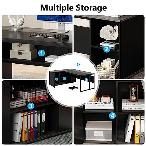- AMPLE STORAGE SPACE: Coming with a storage cabinet, printer cabinet, CPU stand and storage shelves, this executive desk could hold printers, scanners, fax machines and any other office machines, keeps them within easy reach of your desk to maximize your work space. With powerful storage space, this l shaped computer desk can meet different storage needs.