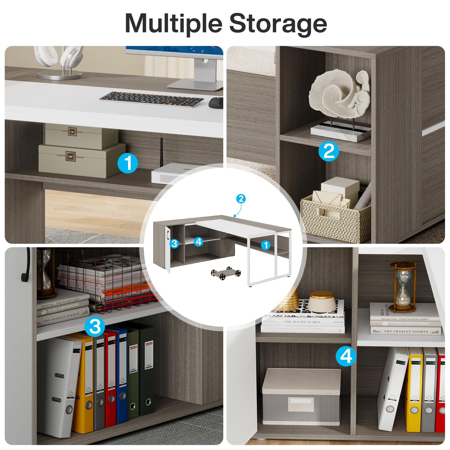 Tribesigns 71 inch Executive Desk, L Shaped Desk with Cabinet Storage, Executive Office Desk with Shelves, Business Furniture Set Workstation for Home Office, Gray and White
