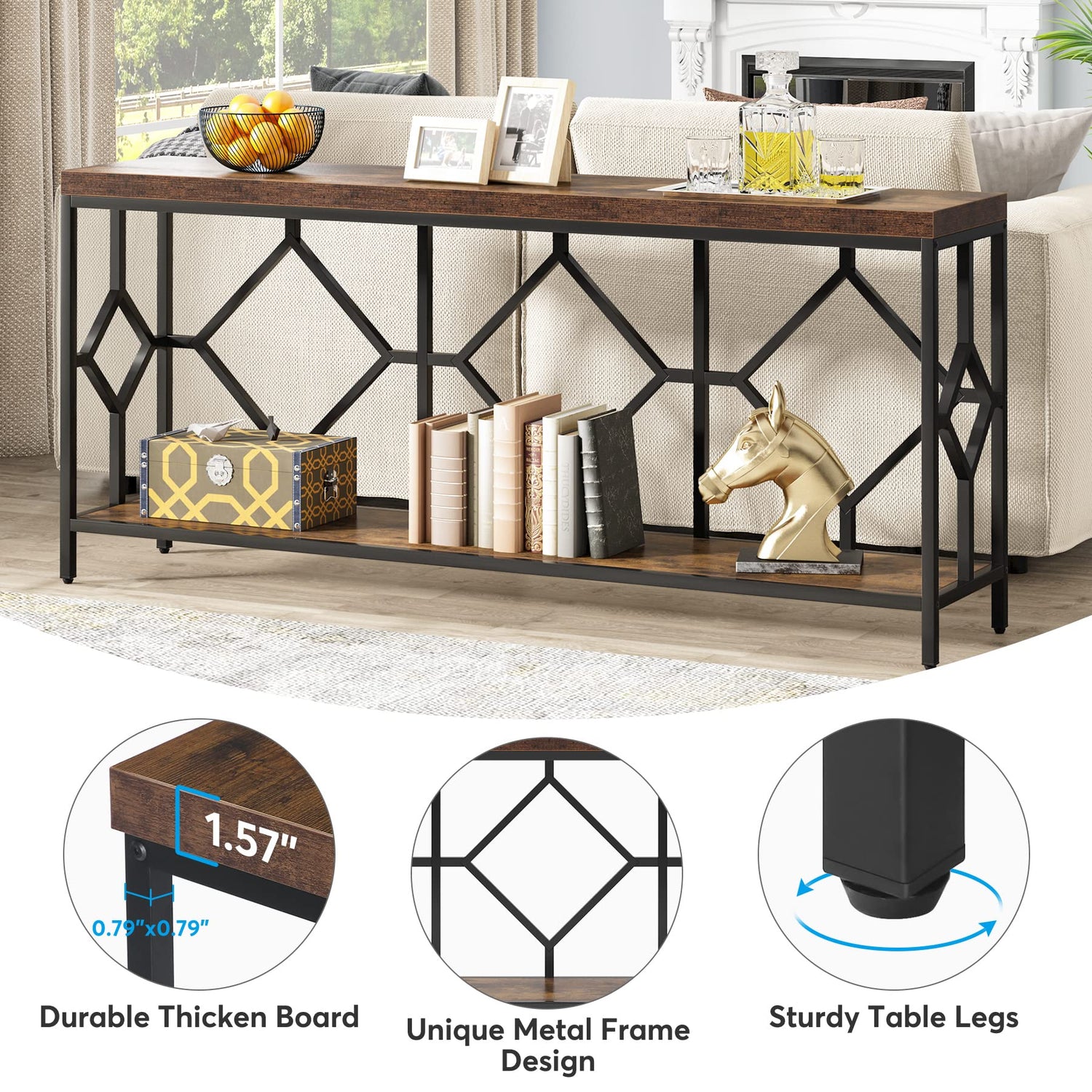 Tribesigns 71 Inch Extra Long Sofa Table, Narrow Long Sofa Console Tables Behind Couch Table with Open Storage Shelf