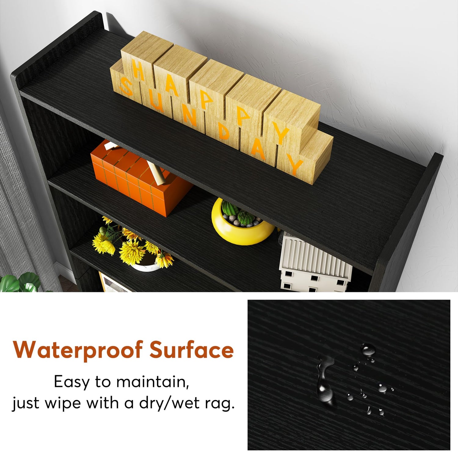 - Full Wood Material: Made of thick particleboard with waterproof melamine finish, this tall library bookshelf is waterproof, scratch resistant and easy to clean. Free-standing vertical design, has a super large load capacity. Each shelf can load 22lbs. Totally 132lbs