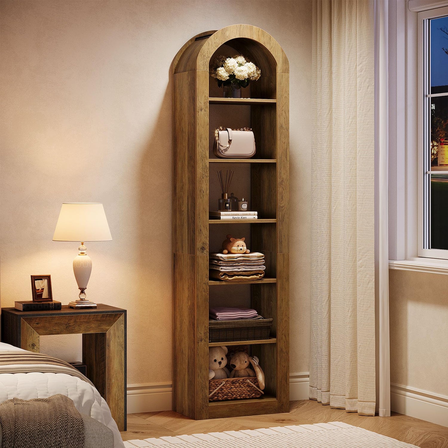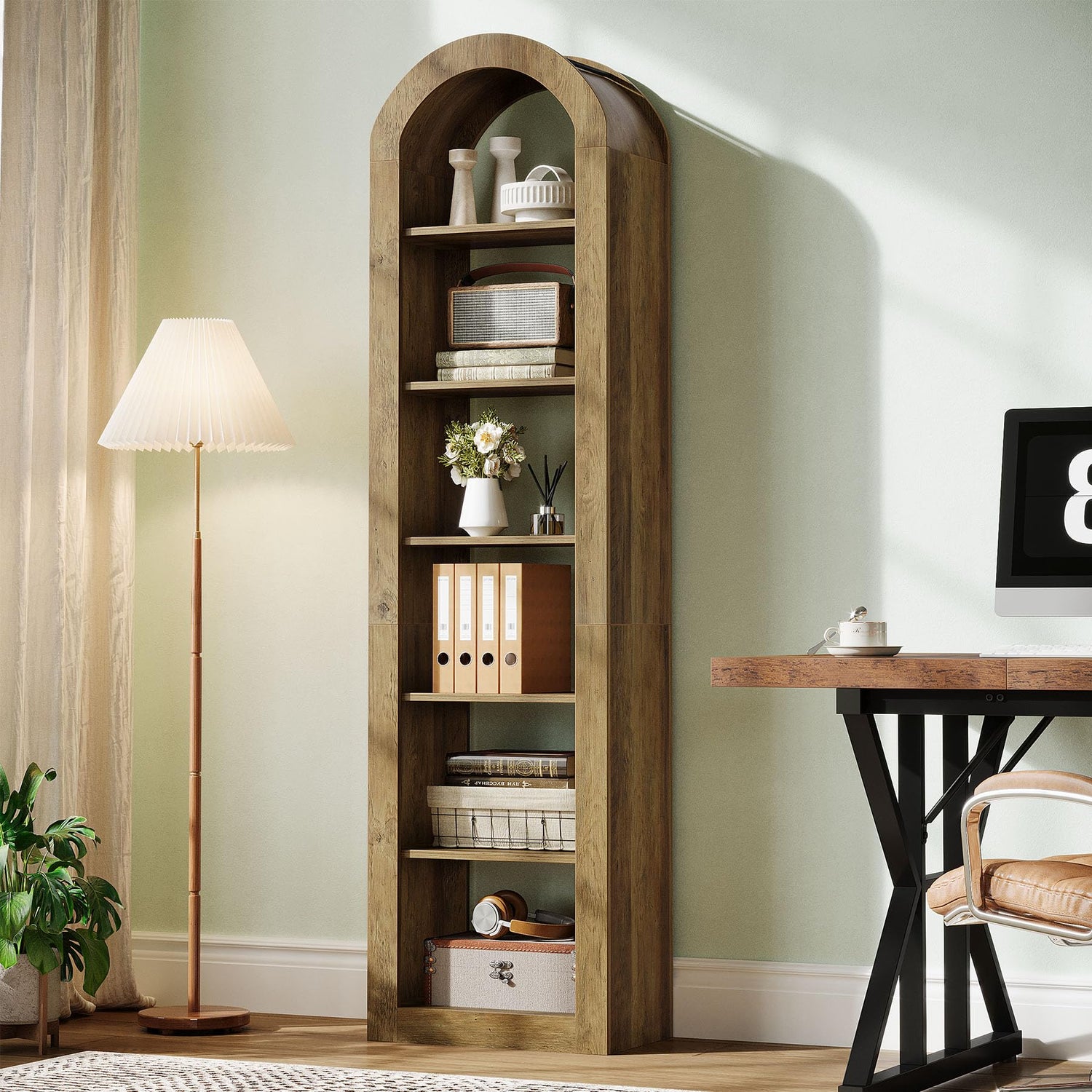 Tribesigns 74.8" Tall Arched Bookshelf, 6-Tier Narrow Open Bookcase, Floor Standing Corner Display Shelves Storage Organizer for Small Space, Home Office, Living Room (1, Brown)