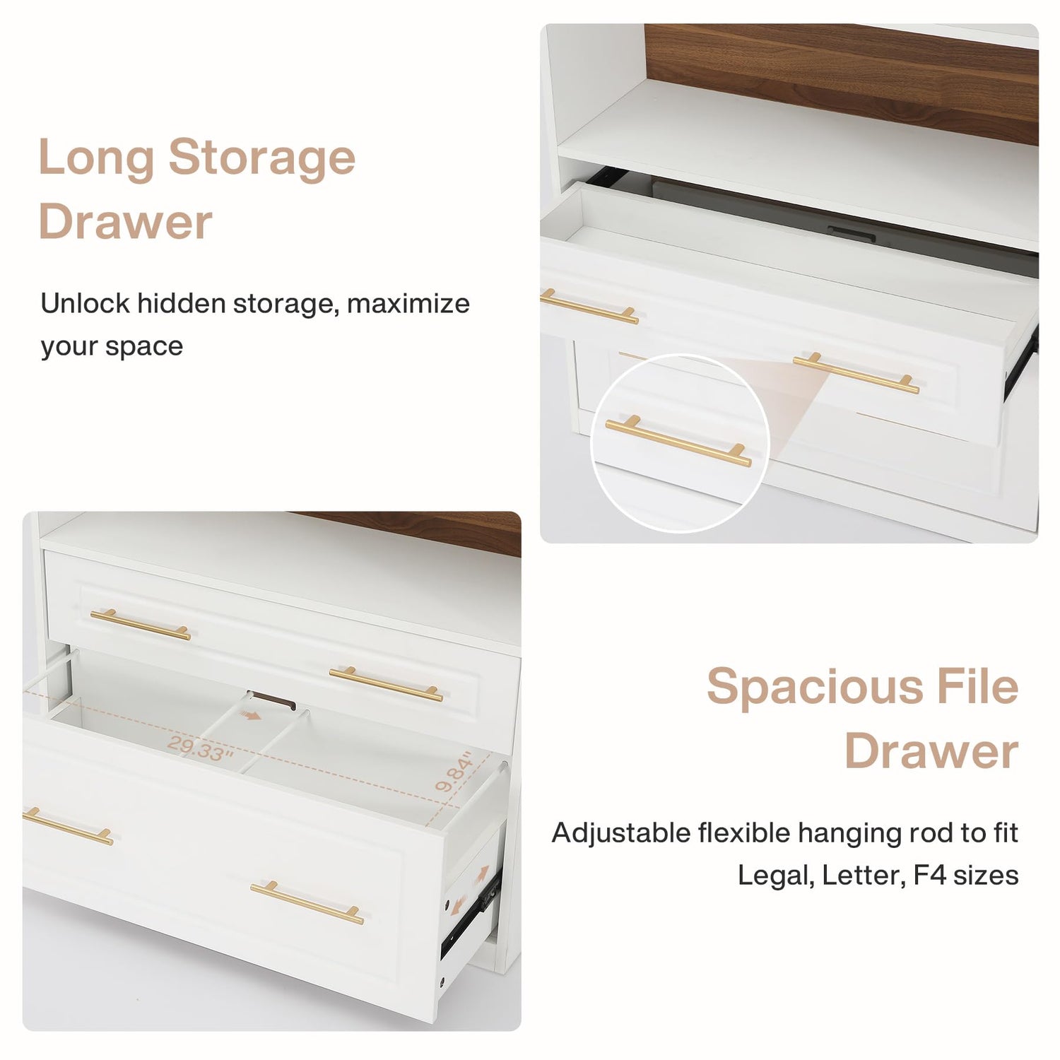 - Large Storage Capacity: Features five spacious shelves, a storage drawer, and a filing cabinet drawer to accommodate books, decorative items, small items, and legal-size documents. Keep everything visible yet neatly organized