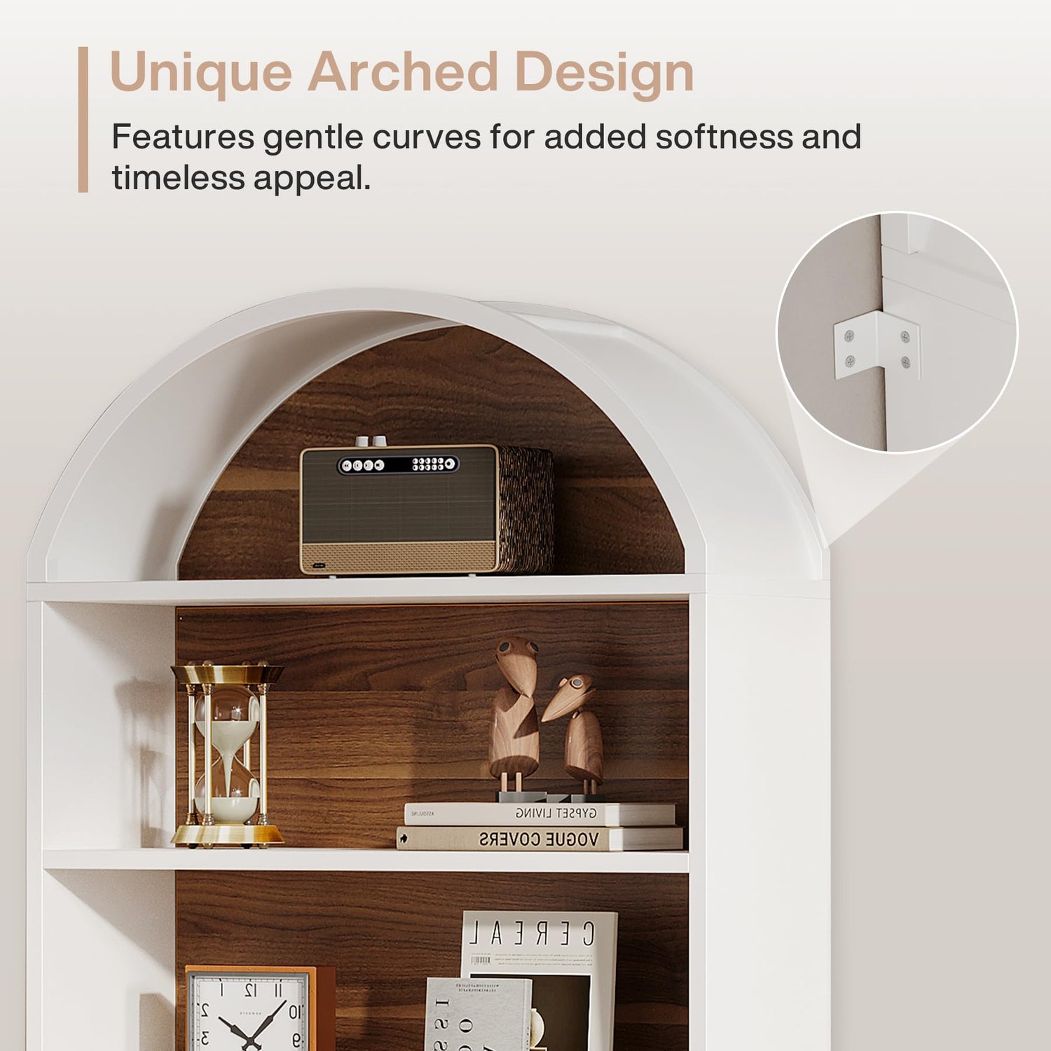 - Chic Arch Design: This elegant bookshelf features graceful arched detailing and clean wooden frames, adding sophisticated charm to any room. Its versatile style blends seamlessly with modern and traditional decor alike