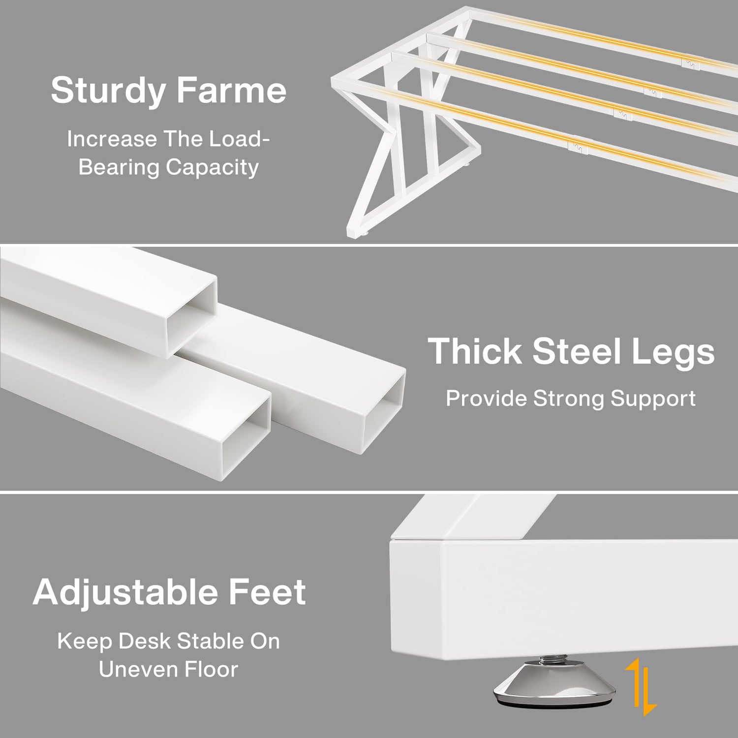 - [ROBUST CONSTRUCTION]: Crafted from high-quality particleboard and sturdy metal frames, this computer desk is strong enough to support heavy-duty loads and ensure durability for years to come. The adjustable pads can keep the desk stable on an uneven floor.