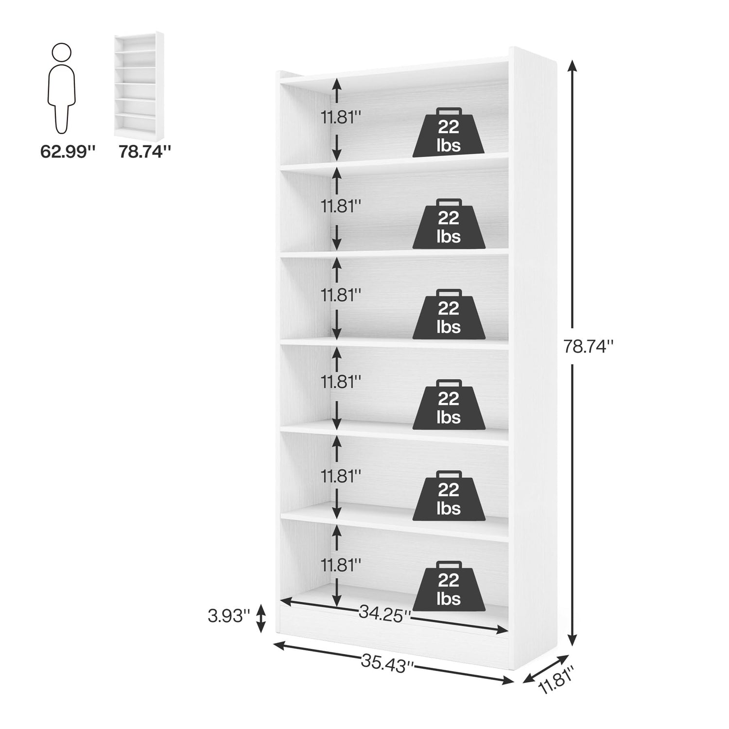 Crafted from thick particleboard and finished with a waterproof melamine, this bookshelf is built to last. It’s designed to withstand the rigours of daily use with features like scratch resistance and effortless cleaning. Each shelf is capable of holding up to 22lbs, allowing a total load capacity of 132lbs, making it perfect for larger items such as books, dictionaries, and decorative models.